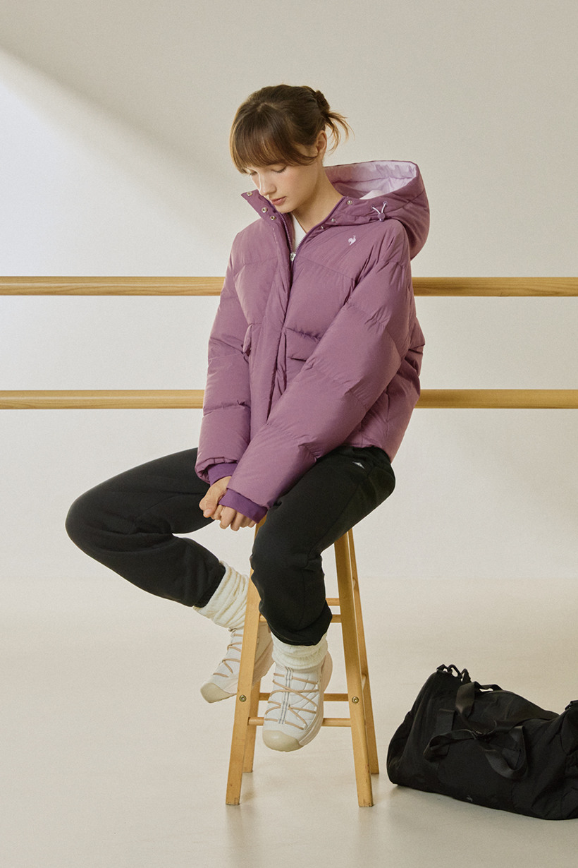 르꼬끄 스포르티브 여성 네쥬 루즈핏 후드 다운 자켓 - 블랙 QQ422ODJO3