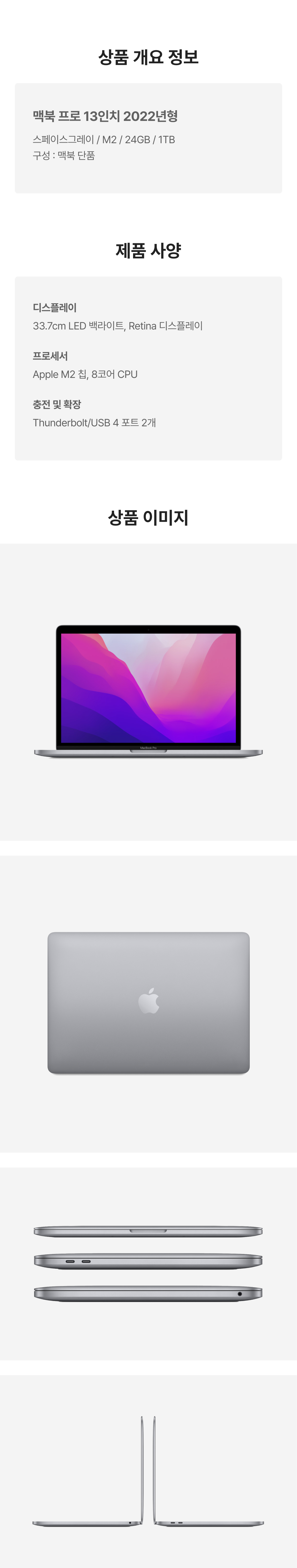 [A등급] 리퍼비시 2022 맥북 프로 13 M2 1테라 SSD 24기가 램 스페이스그레이