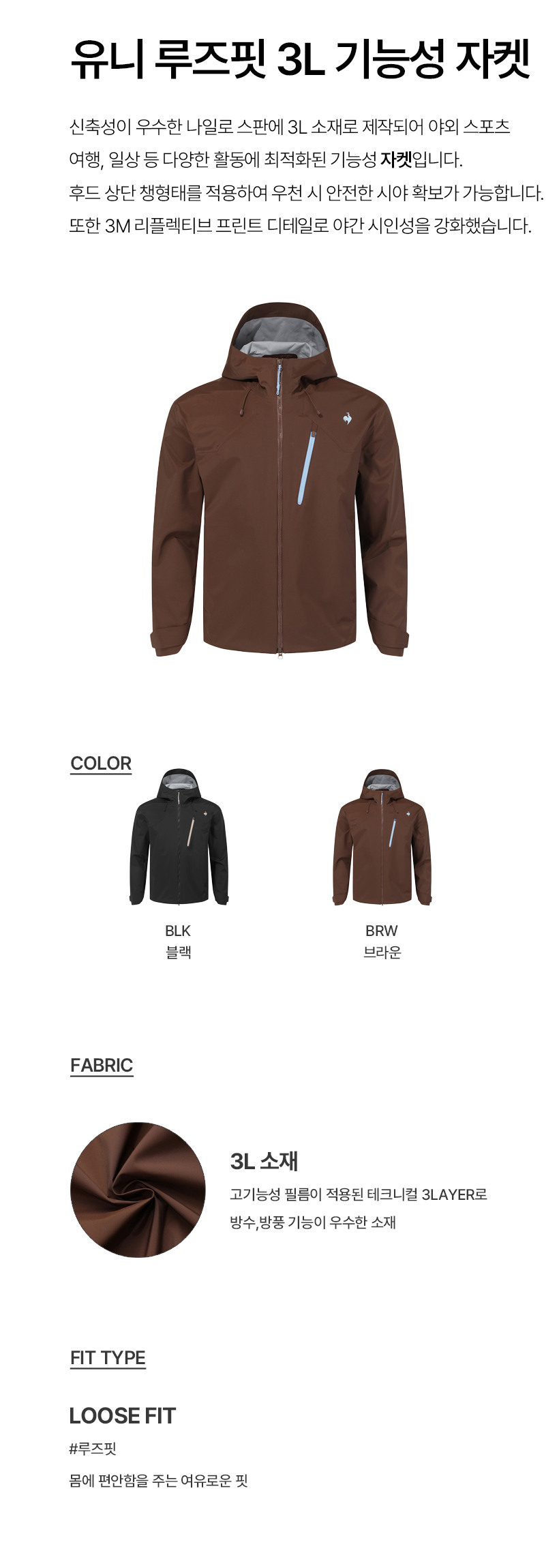 르꼬끄 스포르티브 유니 루즈핏 3L 기능성 자켓 - 브라운(QQ323EJK92)