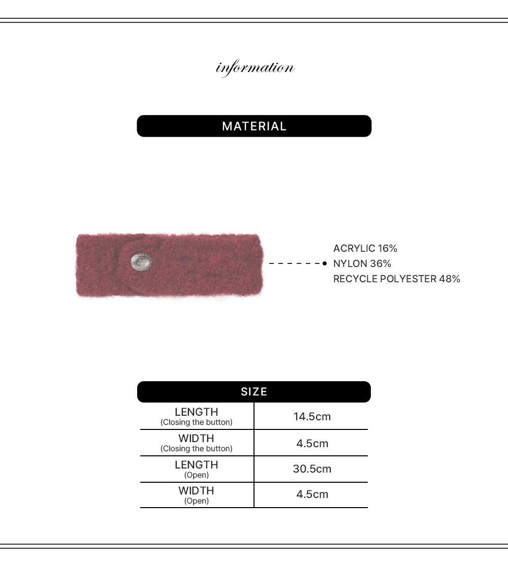 부드럽고 포근한 짜임으로 제작된 니트 넥 밴드입니다. 빈티지한 실버 금속 단추로 오픈/클로징 가능하며,스타일링에 포인트를 더할 수 있습니다. 넥워머나 포인트 액세서리로도 다양한 연출이 가능합니다. -제품 손상을 최소화하기 위해 드라이클리닝을 권장드립니다. -의류 건조기 사용 시 제품 수축 및 변형의 우려가 있습니다. -소비자의 부주의로 인한 제품 손상 및 훼손은 보상 대상에서 제외됩니다.