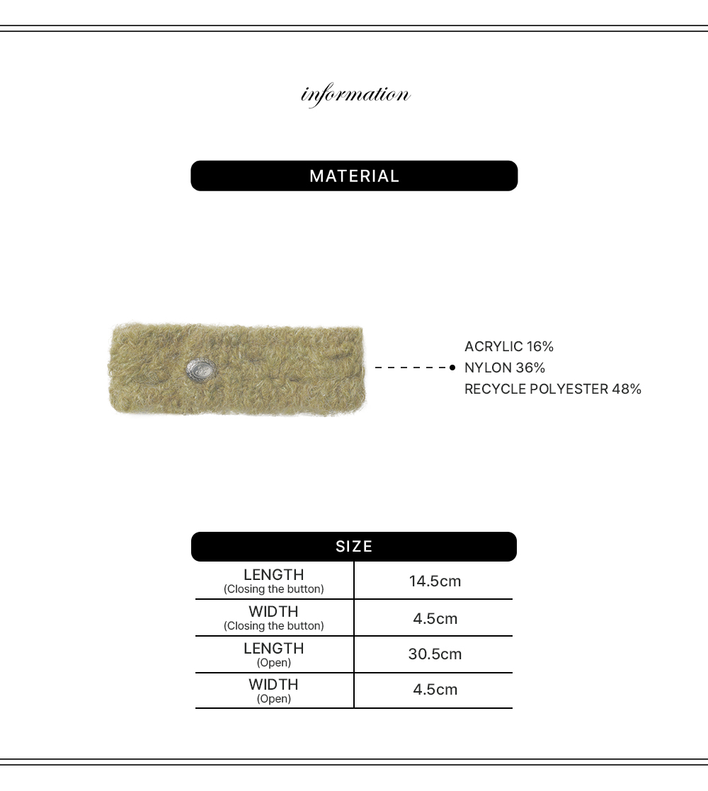 부드럽고 포근한 짜임으로 제작된 니트 넥 밴드입니다. 빈티지한 실버 금속 단추로 오픈/클로징 가능하며,스타일링에 포인트를 더할 수 있습니다. 넥워머나 포인트 액세서리로도 다양한 연출이 가능합니다. -제품 손상을 최소화하기 위해 드라이클리닝을 권장드립니다. -의류 건조기 사용 시 제품 수축 및 변형의 우려가 있습니다. -소비자의 부주의로 인한 제품 손상 및 훼손은 보상 대상에서 제외됩니다.
