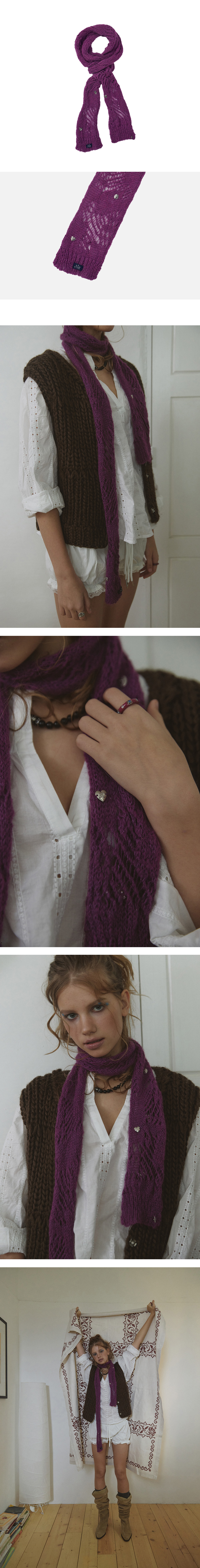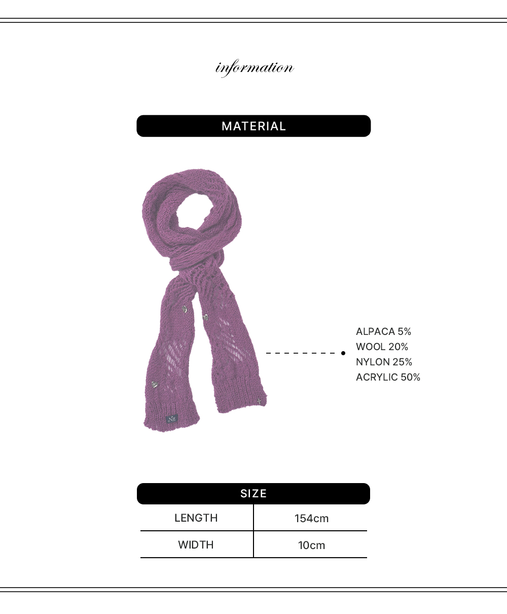 가장자리가 자연스럽게 말리는 실루엣의 머플러입니다. 헤라시 조직 포인트와 금속 로고 팬던트 디테일로 감각적인 무드를 더했습니다. 울과 알파카가 혼방된 원사를 사용해 포근하고 부드러운 터치감을 느낄 수 있습니다. -제품 손상을 최소화하기 위해 드라이클리닝을 권장드립니다. -의류 건조기 사용 시 제품 수축 및 변형의 우려가 있습니다. -소비자의 부주의로 인한 제품 손상 및 훼손은 보상 대상에서 제외됩니다.