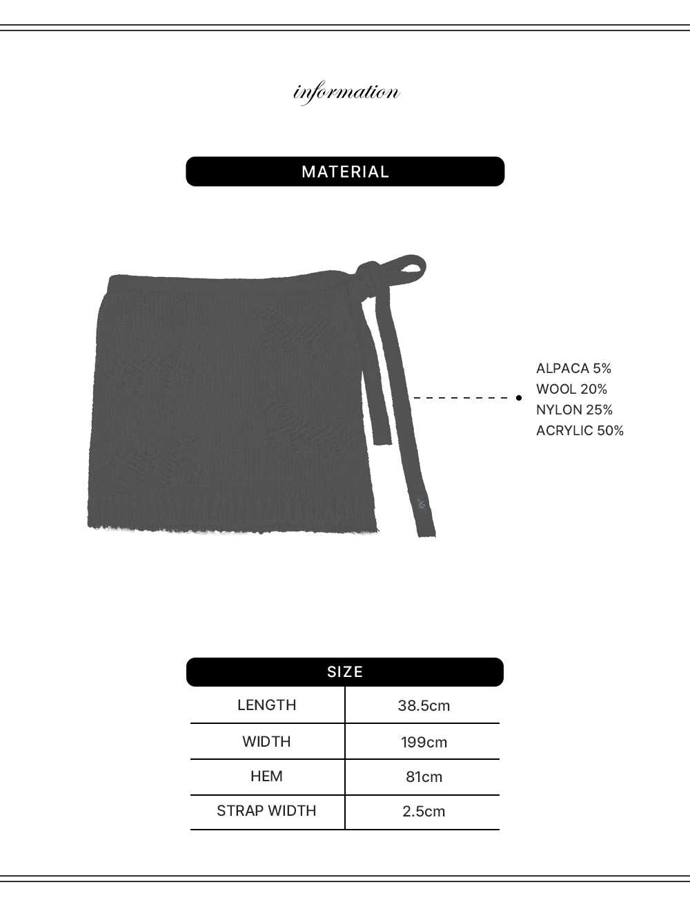 팬츠와 함께 레이어드해 스타일링할 수 있는 스커트입니다. 유연한 실루엣의 니트 조직에 말 모티프의 헤라시 짜임으로 포인트를 더했으며, 배색 스트랩 디테일이 경쾌한 무드를 완성합니다. -제품 손상을 최소화하기 위해 드라이클리닝을 권장드립니다. -의류 건조기 사용 시 제품 수축 및 변형의 우려가 있습니다. -소비자의 부주의로 인한 제품 손상 및 훼손은 보상 대상에서 제외됩니다.