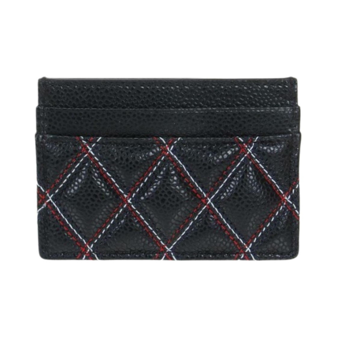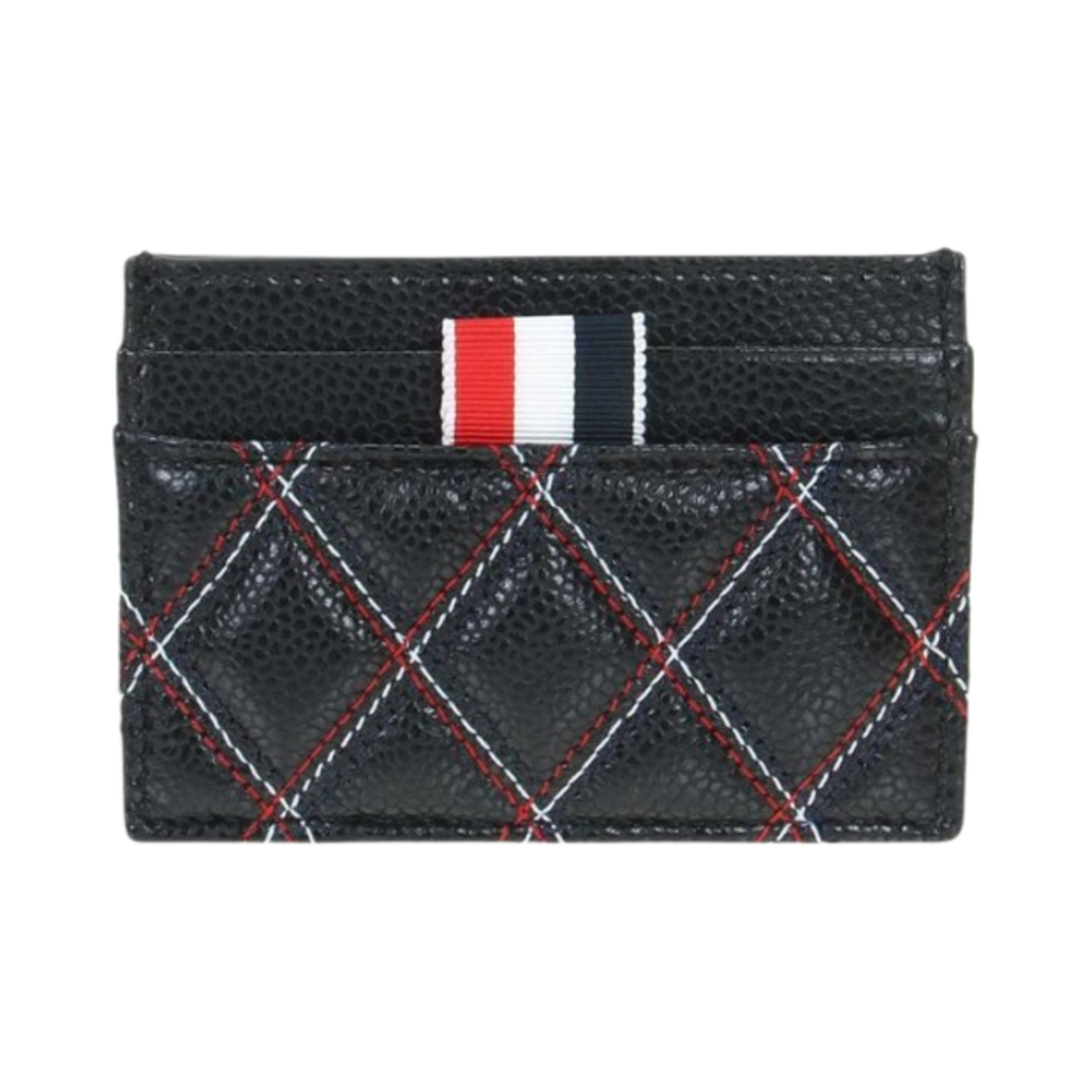 Thom Browne Double Sided Card Holder RWB Quilting in Caviar Agneau Black