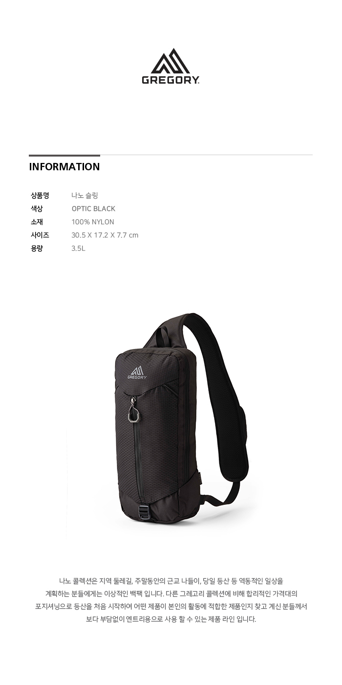 그레고리 나노 슬링백 옵틱블랙