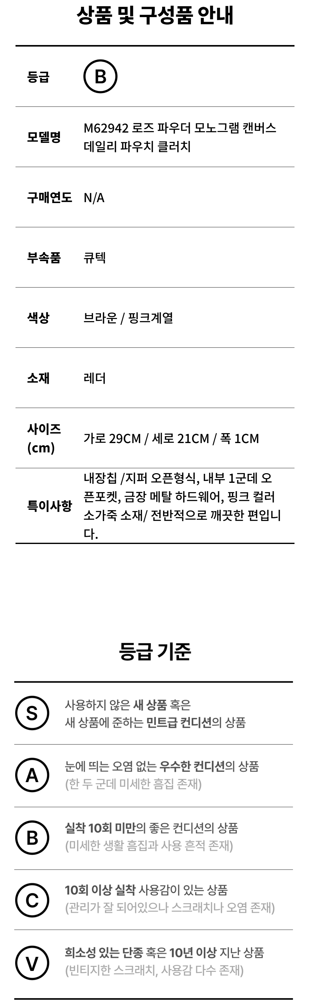 루이비통 M62942 로즈 파우더 루이비통 캔버스 데일리 파우치 클러치