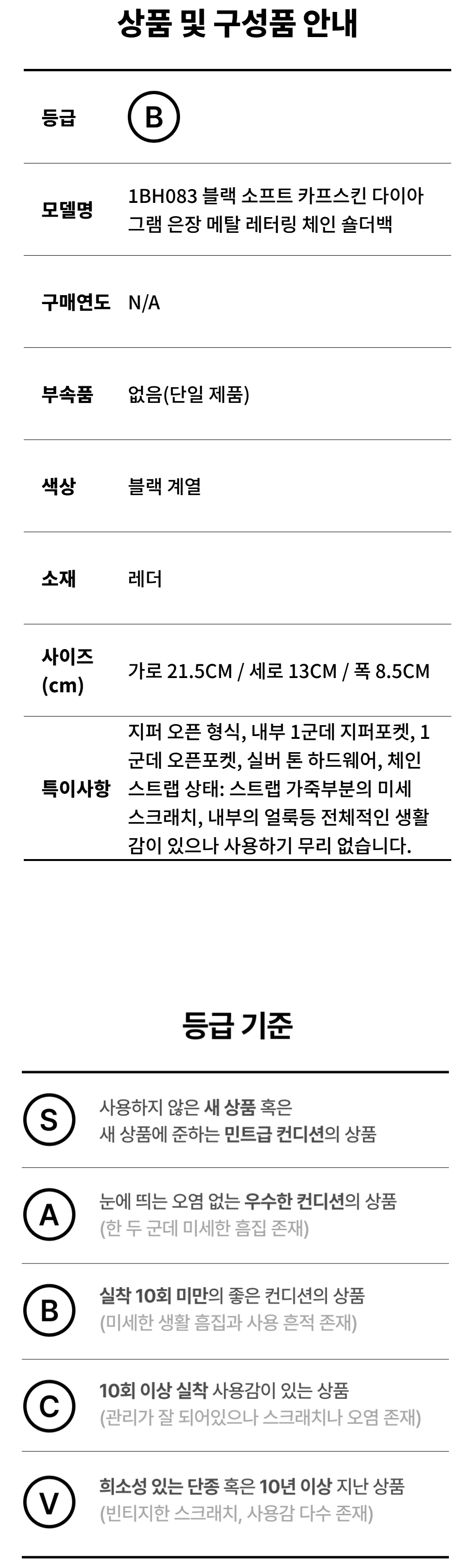 프라다 1BH083 블랙 소프트 카프스킨 다이아그램 은장 메탈 레터링 체인 숄더백