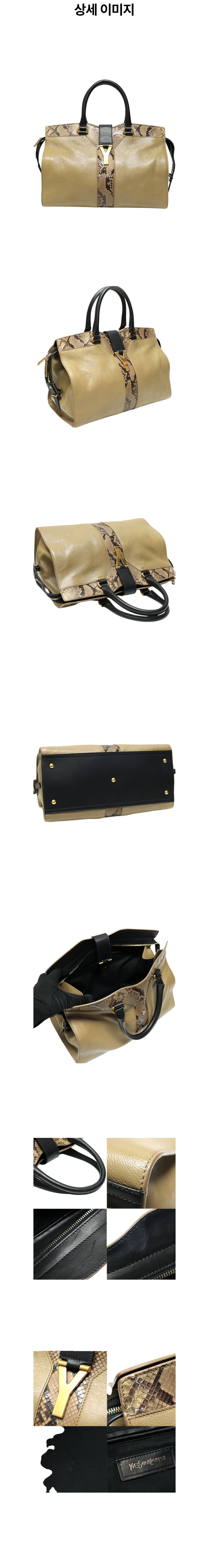 생로랑 279079 브라운 카프스킨 파이톤 금장 카바시크 미디움 토트백