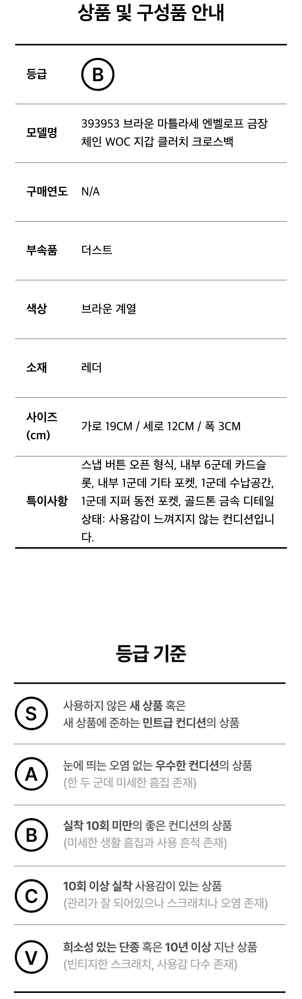 생로랑 393953 브라운 마틀라세 엔벨로프 금장 체인 WOC 지갑 클러치 크로스백