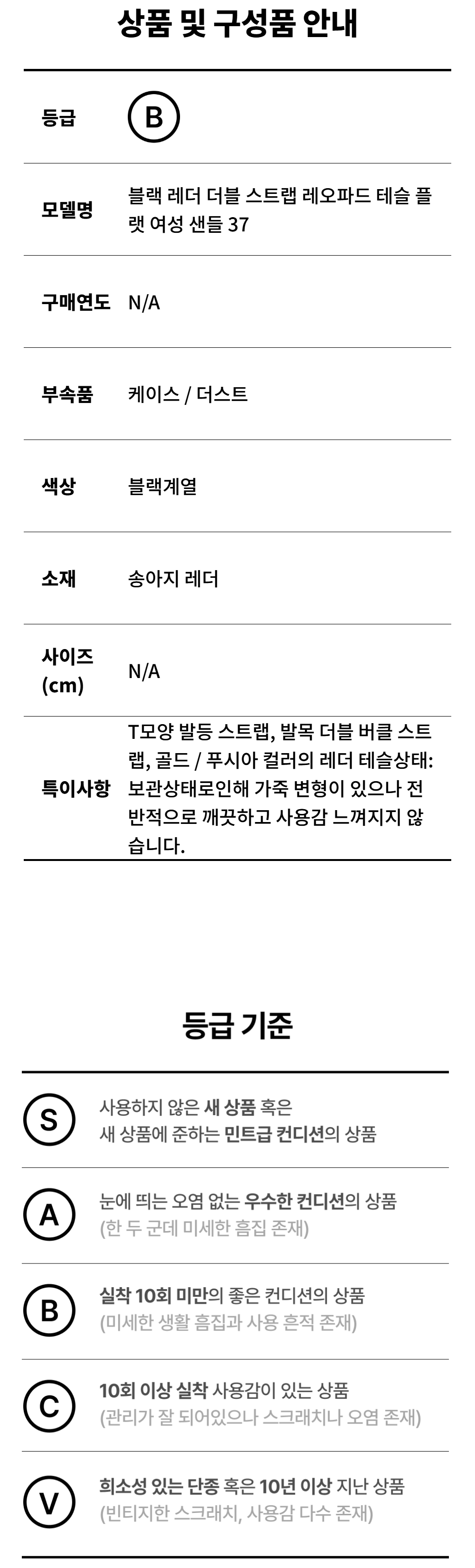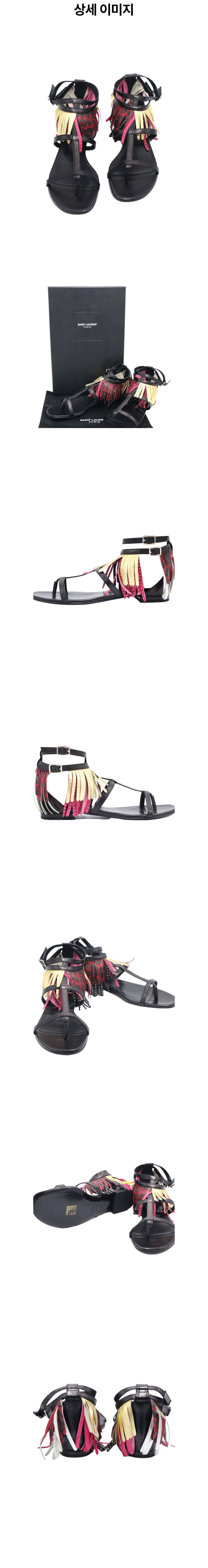 생로랑 블랙 레더 더블 스트랩 레오파드 테슬 플랫 여성 샌들 37