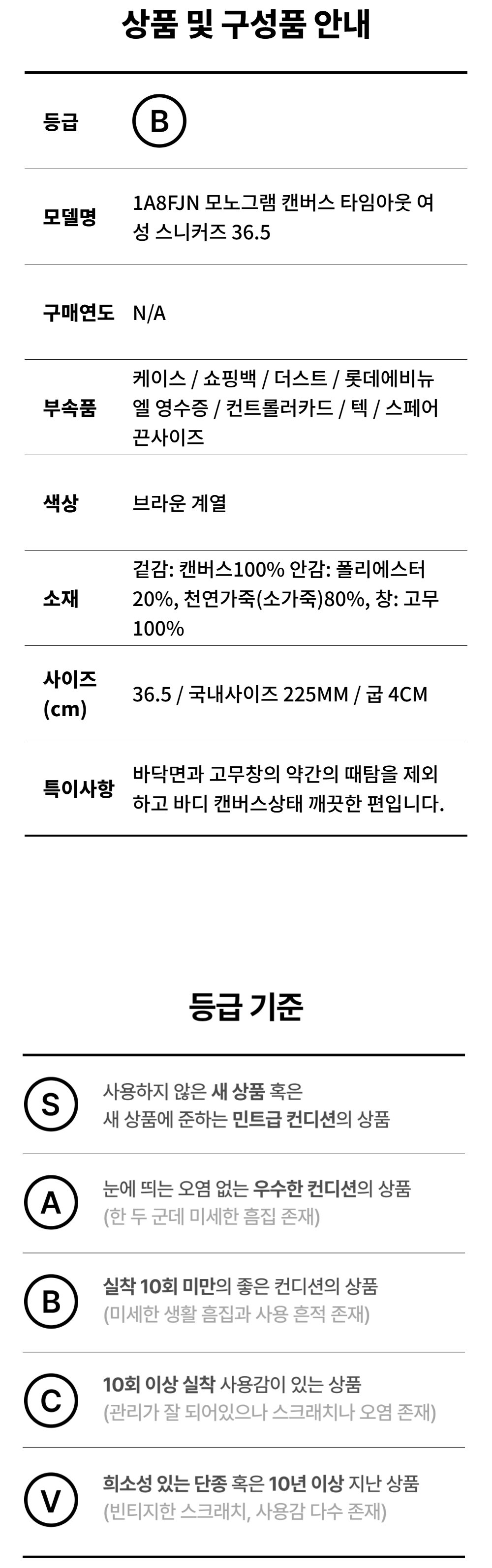 루이비통 모노그램 캔버스 타임아웃 여성 스니커즈 36.5