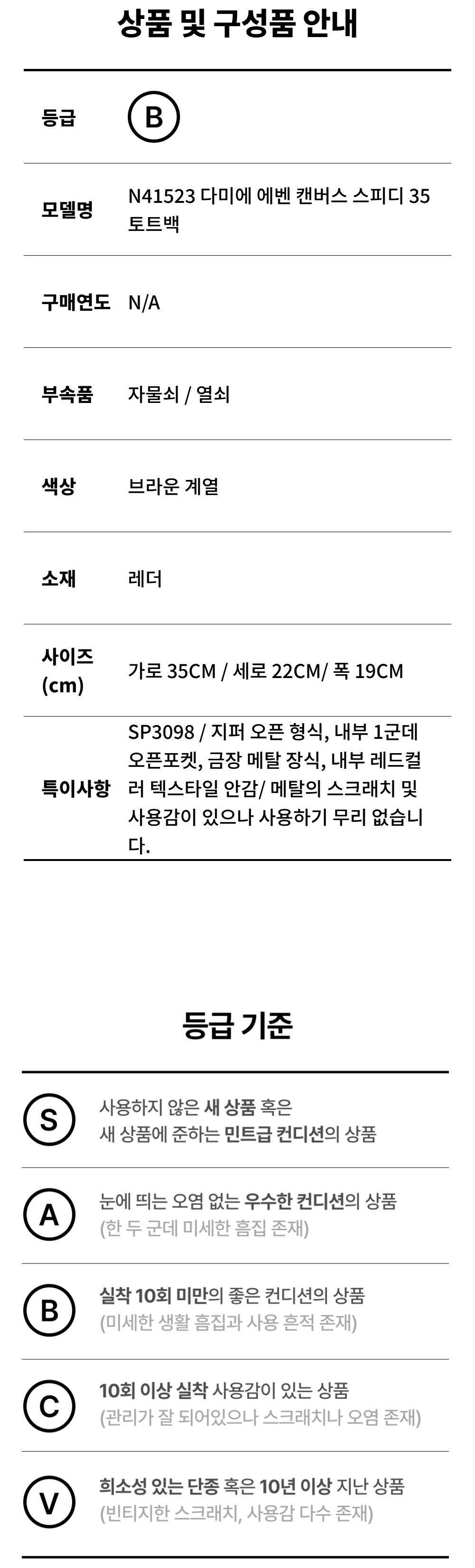 루이비통 N41523 다미에 에벤 캔버스 스피디 35 토트백