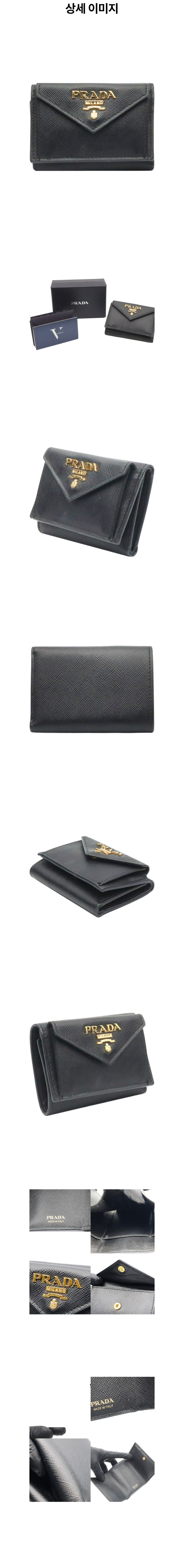 프라다 1MH021 블랙 사피아노 비텔로 금장 메탈 레터링 로고 3단 트리폴드 미니 반지갑