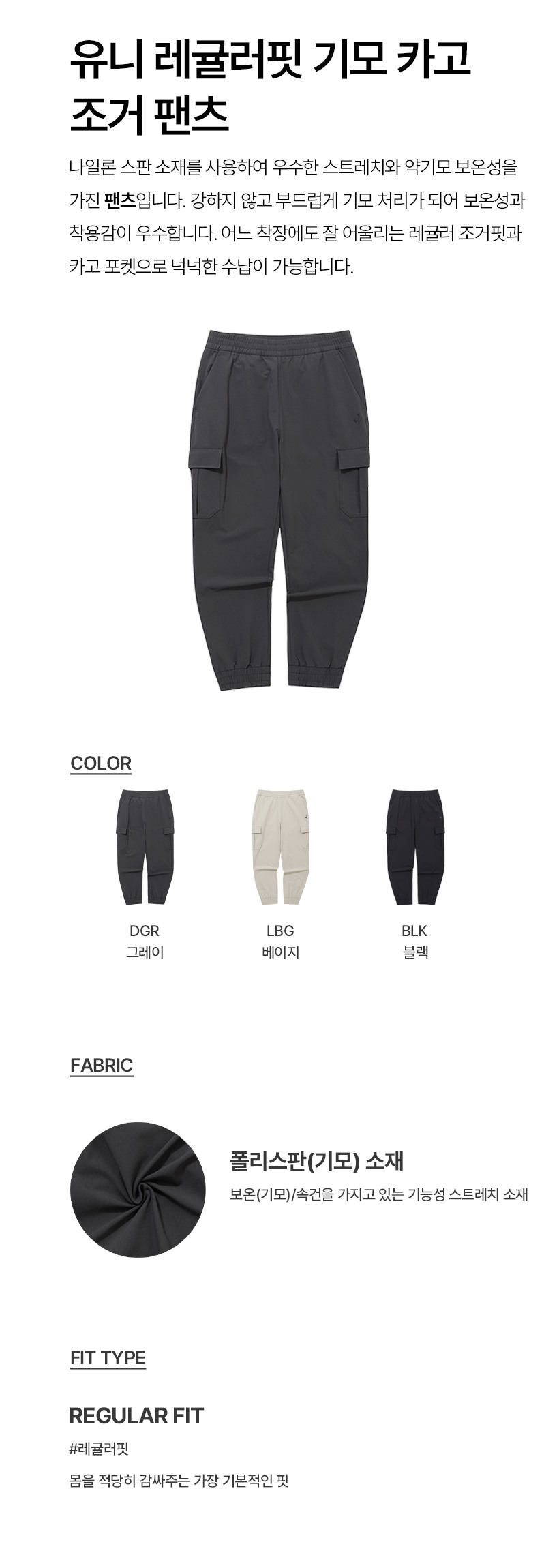 르꼬끄 스포르티브 유니 레귤러핏 기모 카고 조거 팬츠 - 그레이(QQ423LPTO1)
