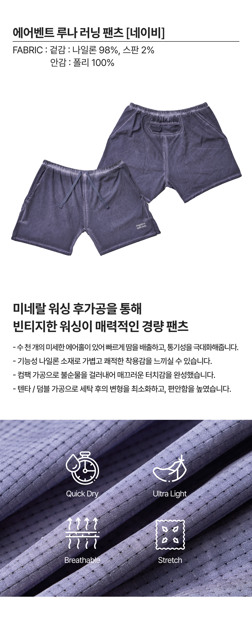 네거티브 스플릿 클럽 에어벤트 루나 러닝 팬츠 네이비