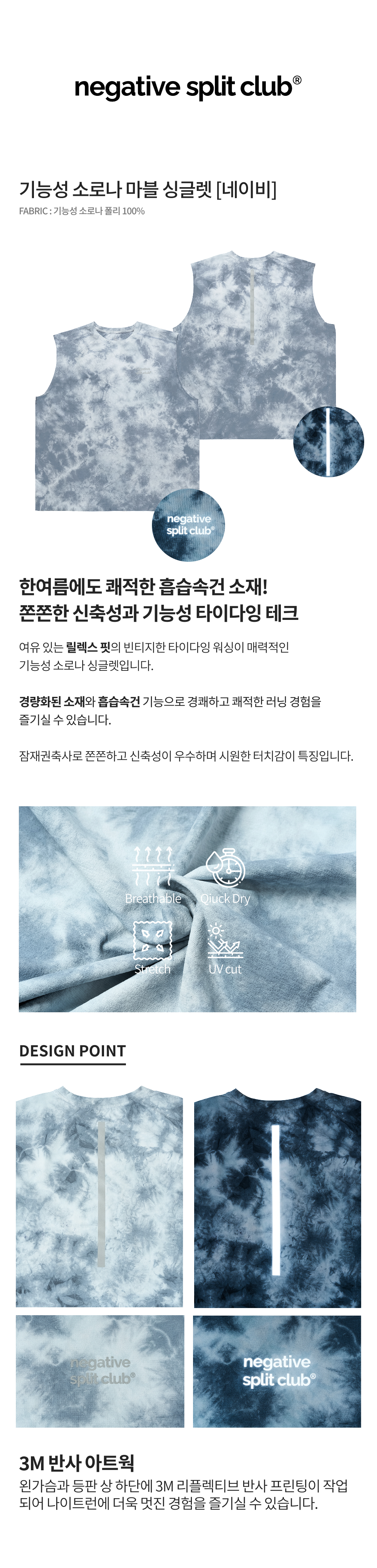 네거티브 스플릿 클럽 기능성 소로나 마블 싱글렛 네이비