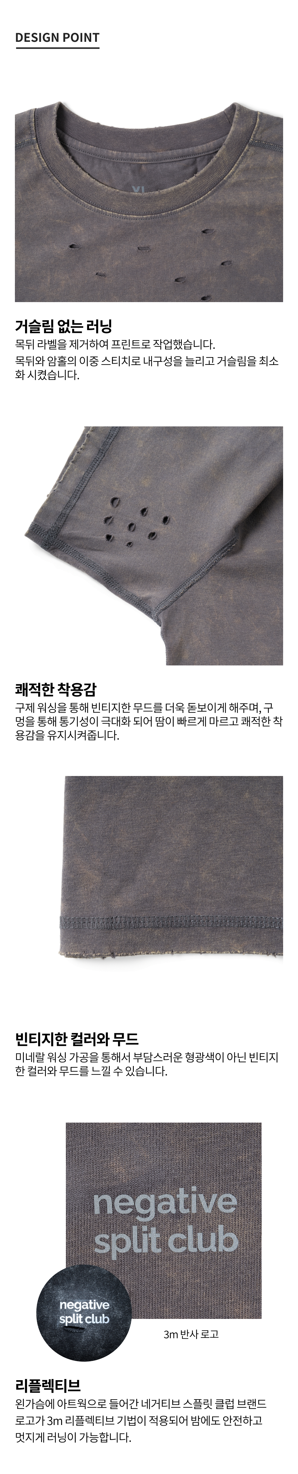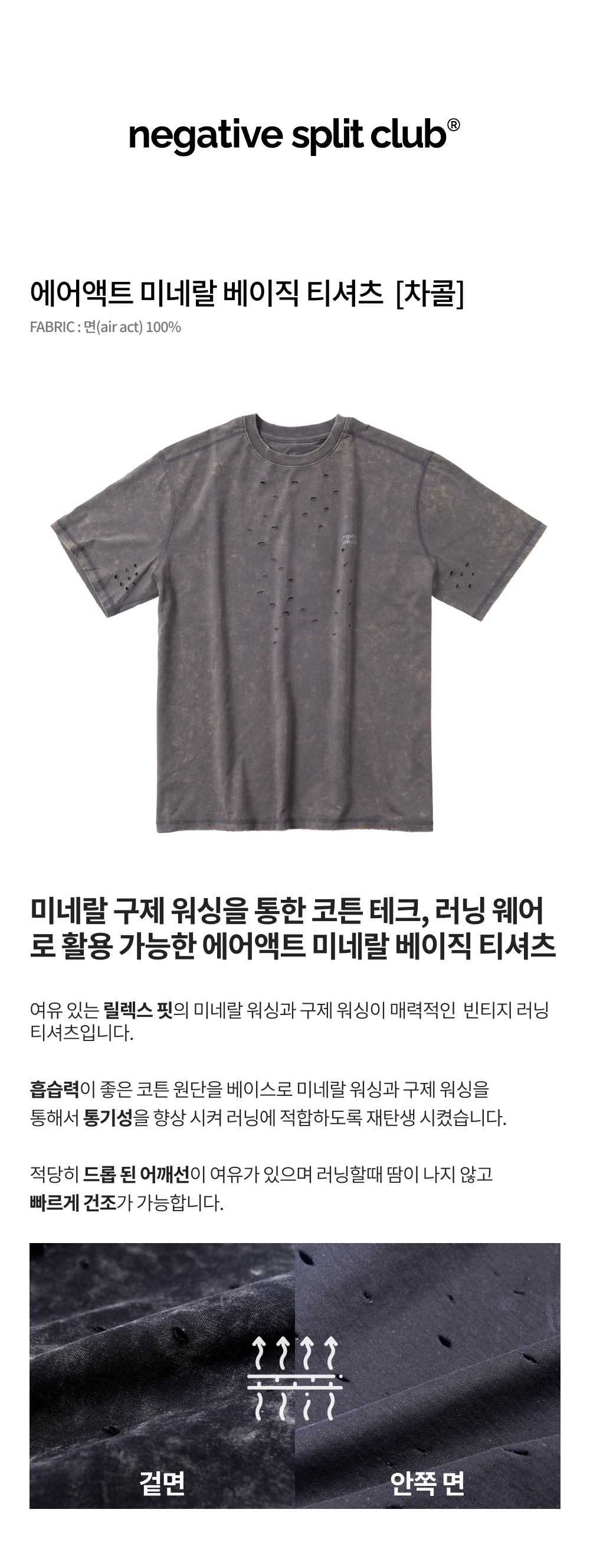 네거티브 스플릿 클럽 에어액트 미네랄 베이직 티셔츠 차콜