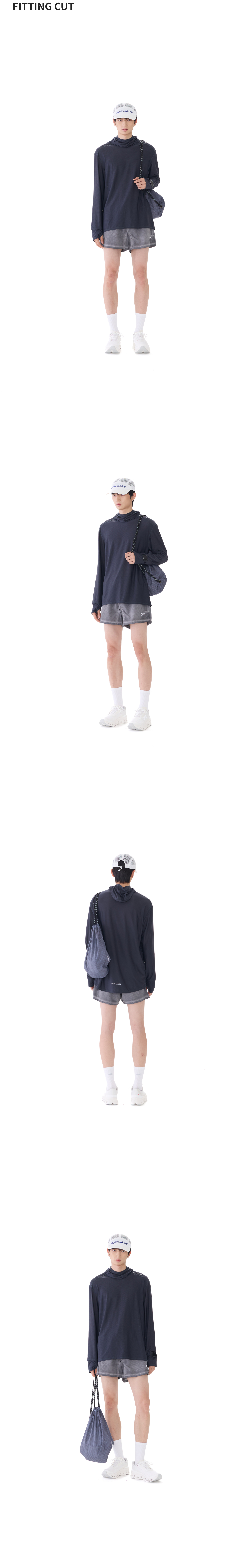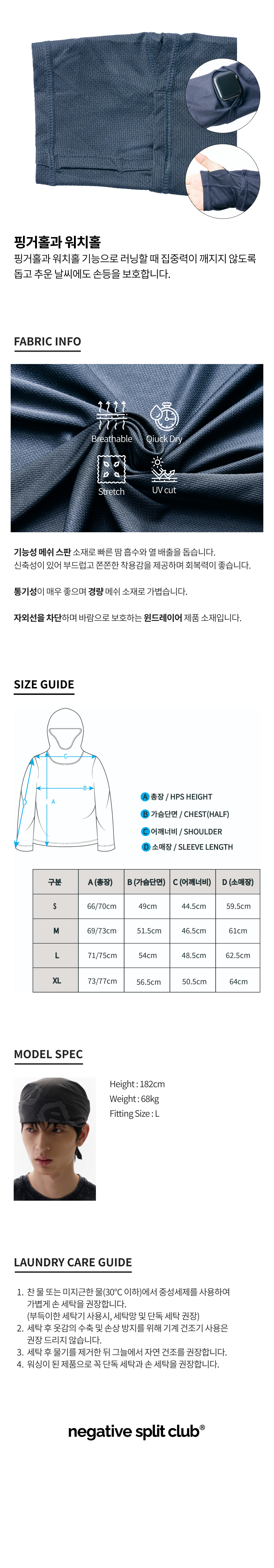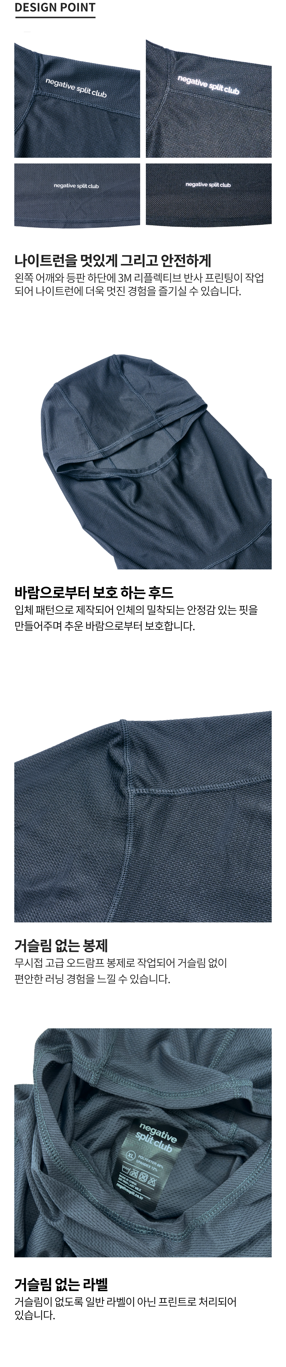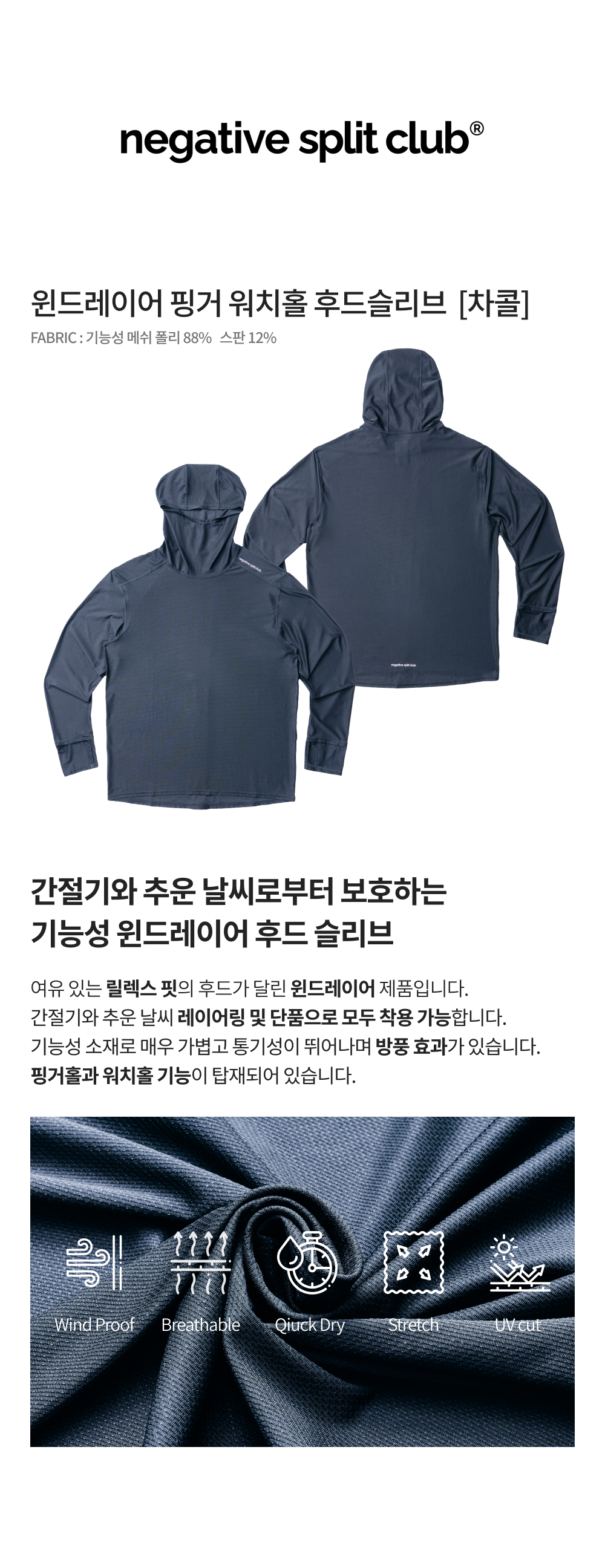 네거티브 스플릿 클럽 윈드레이어 핑거 워치홀 메쉬 후드슬리브 차콜