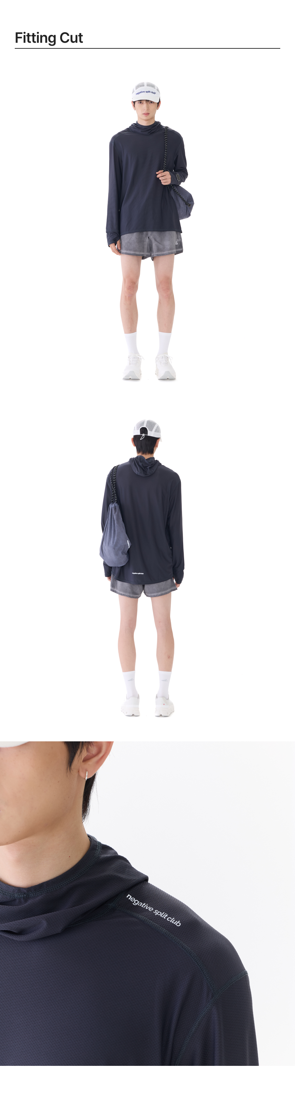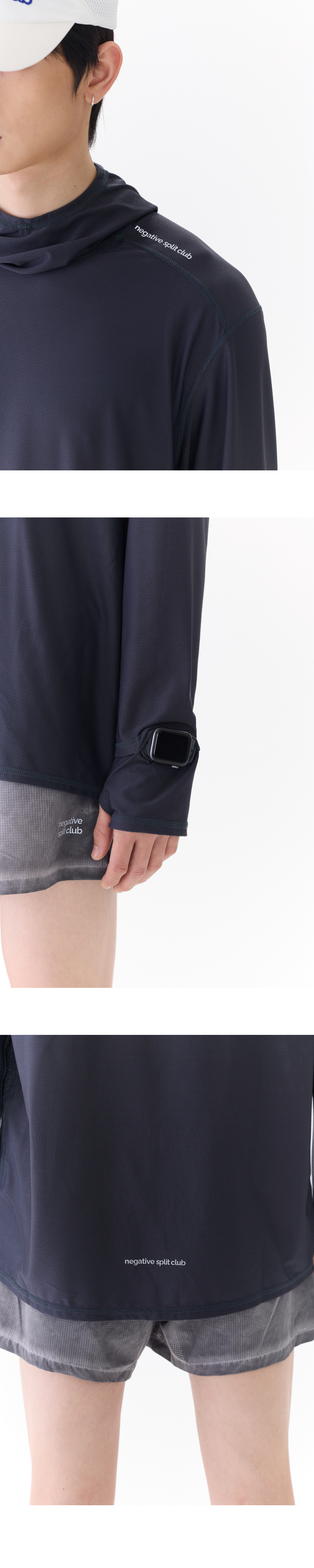negative split club Windlayer Finger Watch-Hole Mesh Hood Sleeve Charcoal