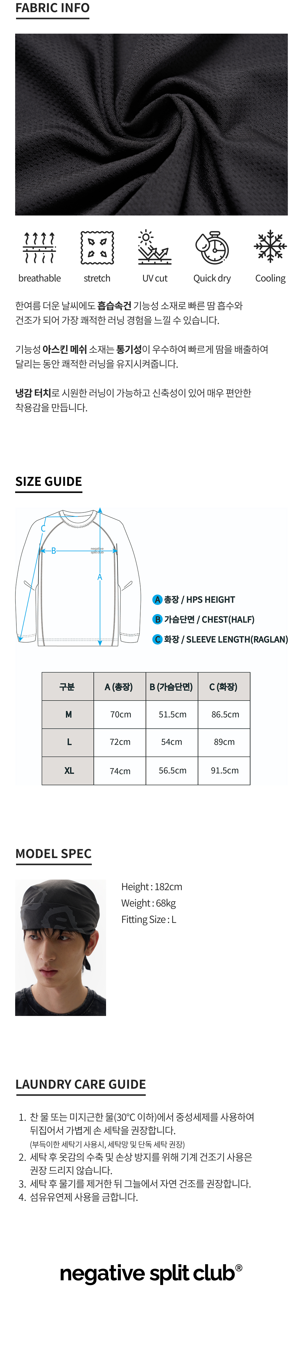 네거티브 스플릿 클럽 스프린트 메쉬 롱슬리브 블랙