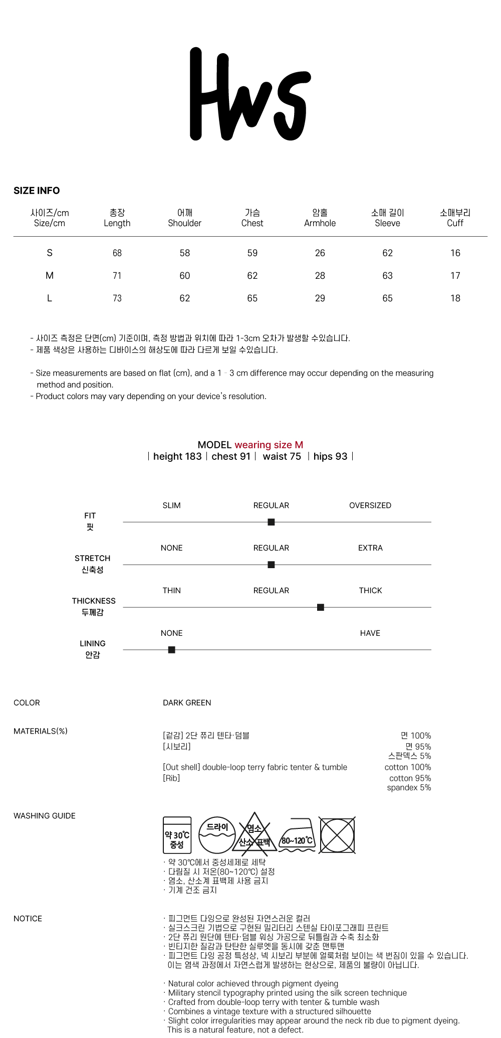 홍우성 피그먼트 유닛 스웻셔츠 다크 그린