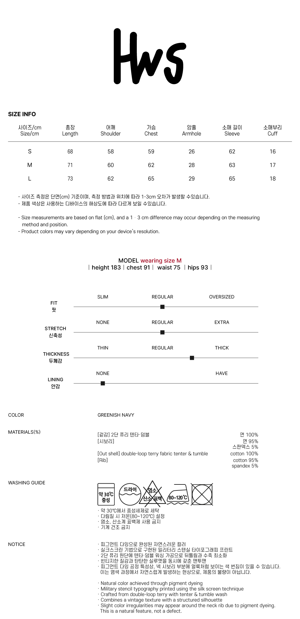 홍우성 피그먼트 유닛 스웻셔츠 그리니시 네이비
