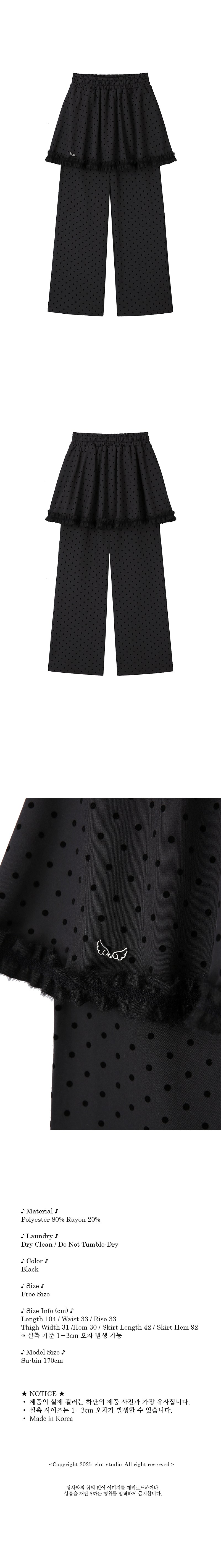 클럿 스튜디오 도트 스커트 팬츠 블랙
