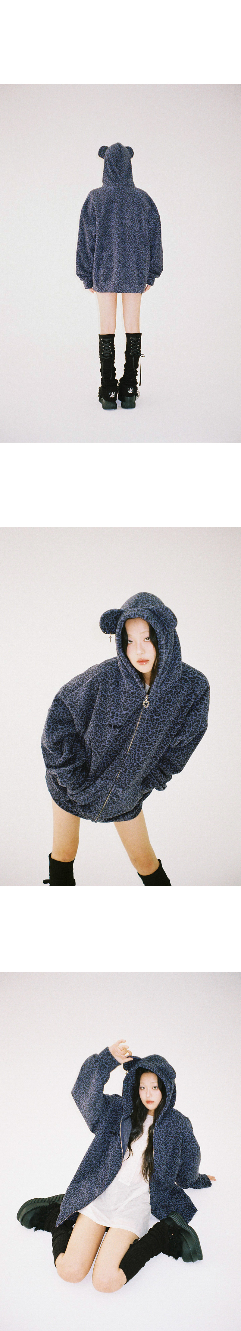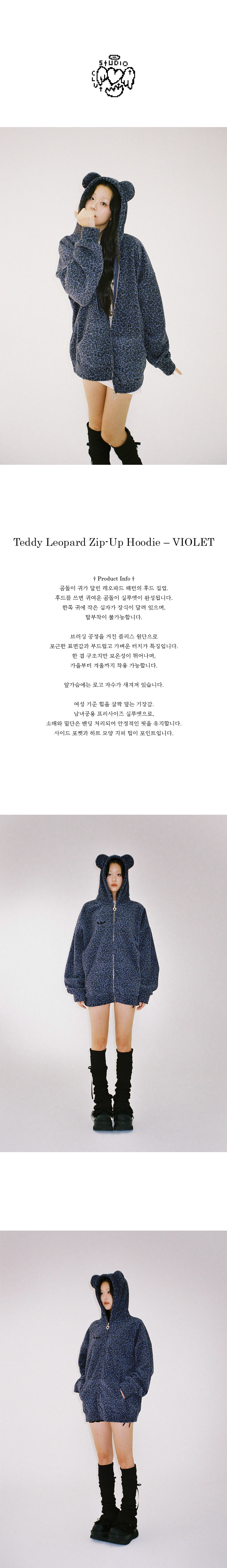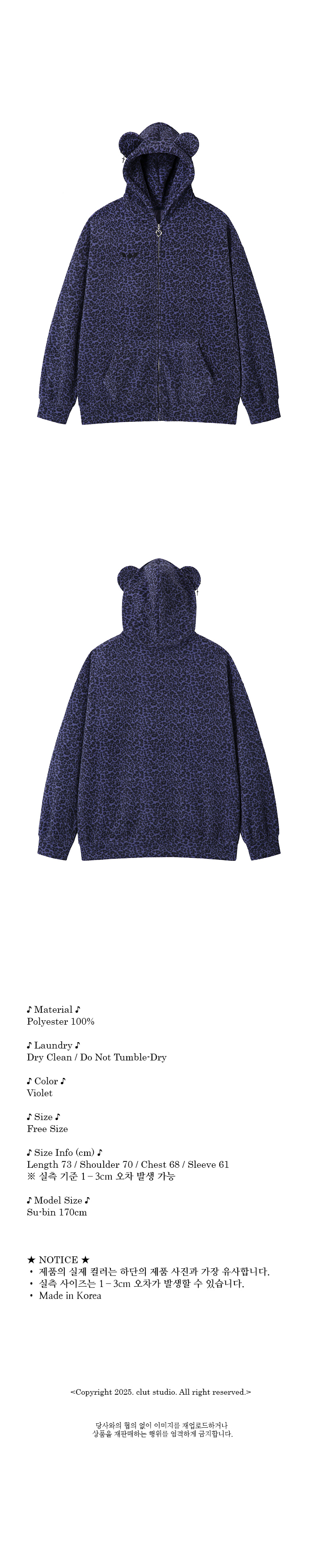 클럿 스튜디오 테디 레오파드 집업 후드 바이올렛