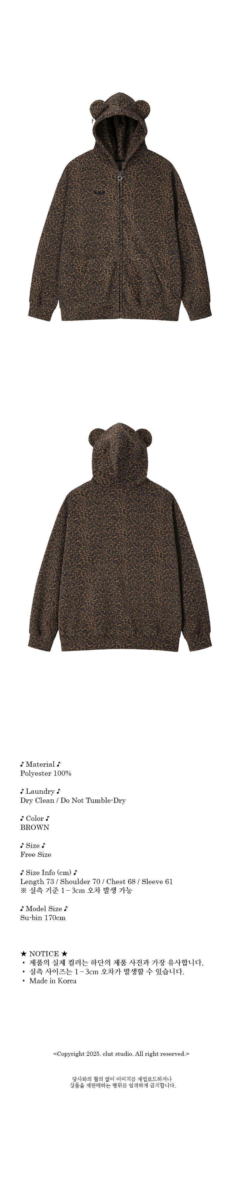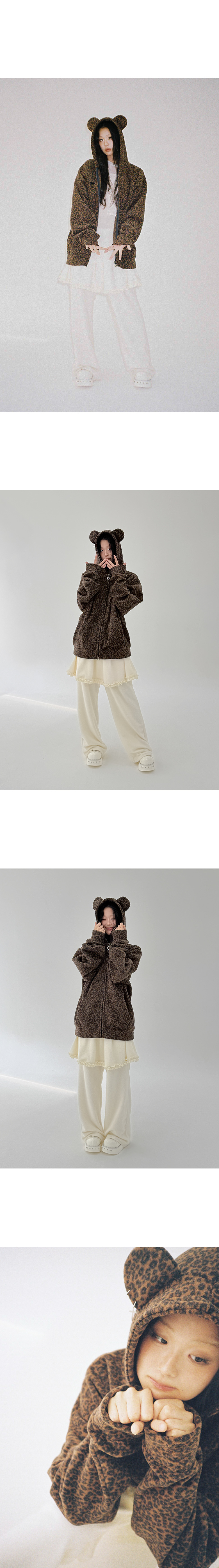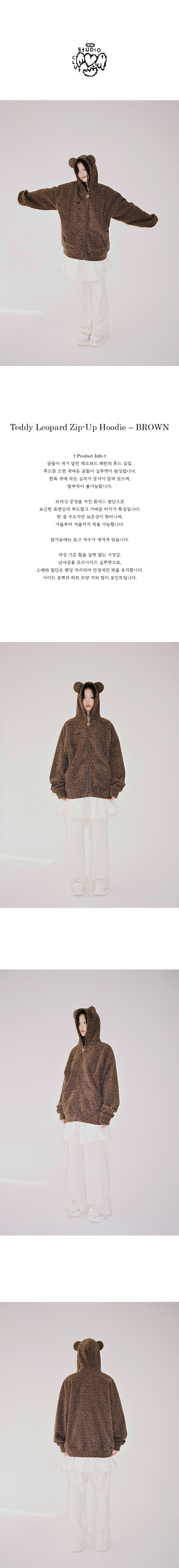클럿 스튜디오 테디 레오파드 집업 후드 브라운