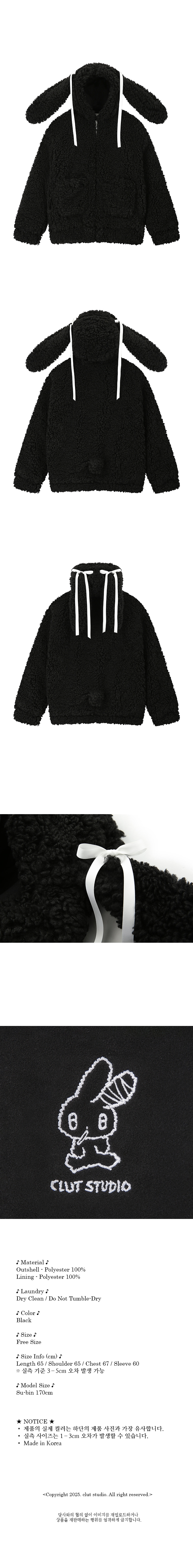[예약 배송] 클럿 스튜디오 슬리피 버니 자켓 블랙