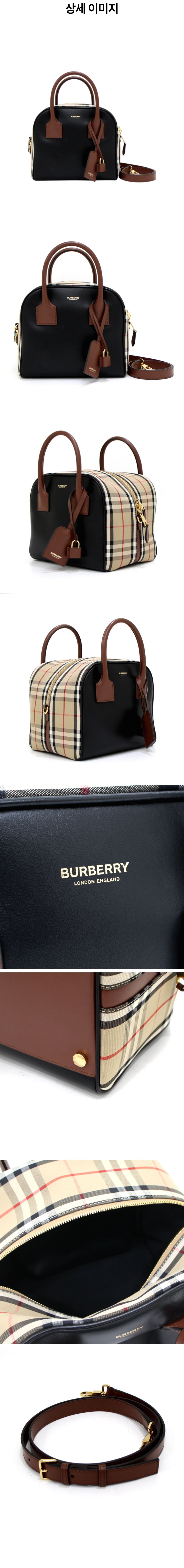 버버리 8019359 블랙 레더 빈티지체크 스몰 큐브 토트백 겸 숄더백 aa38473