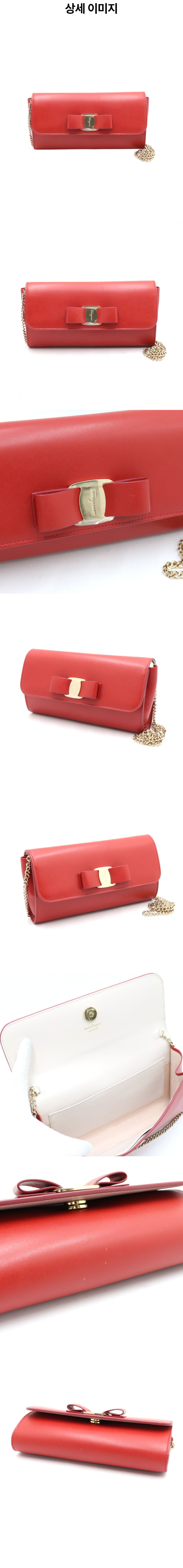 페라가모 22 D523 레드 바라 보우 미니 클러치 겸 금장 체인 숄더백 aa42905