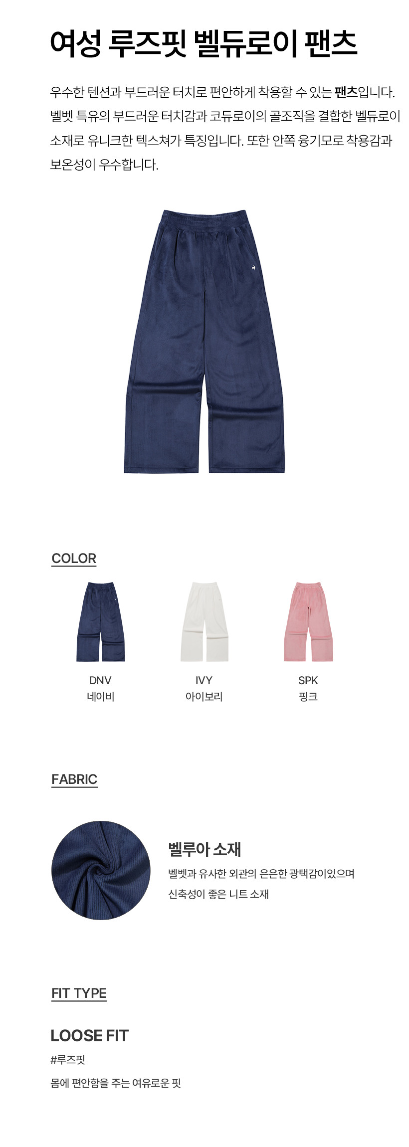르꼬끄 스포르티브 여성 루즈핏 벨듀로이 팬츠 - 네이비 QQ422OFPO3