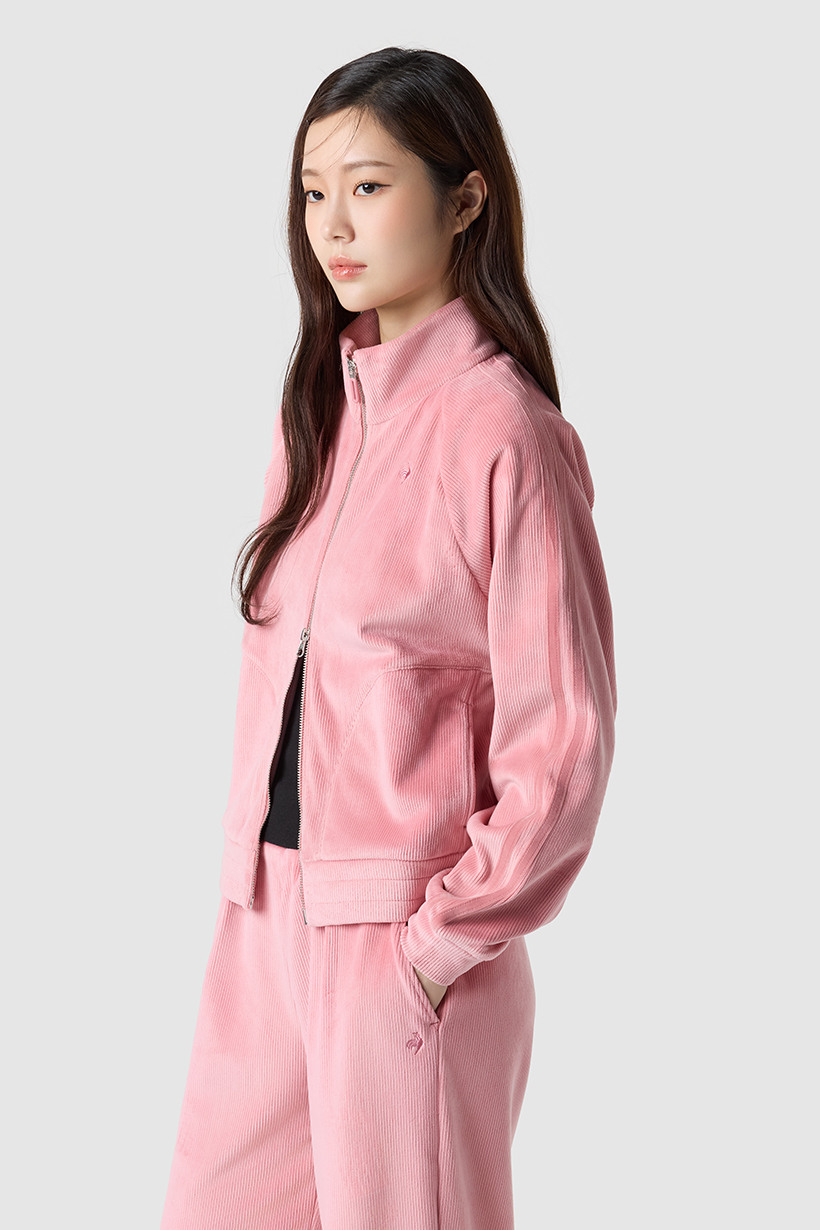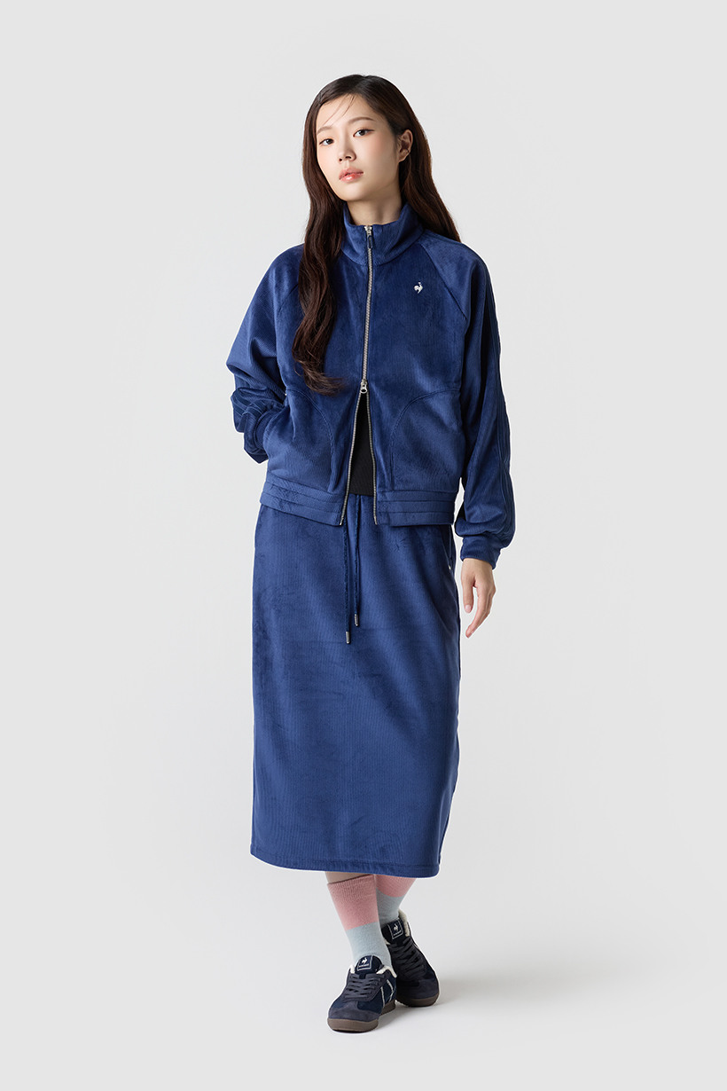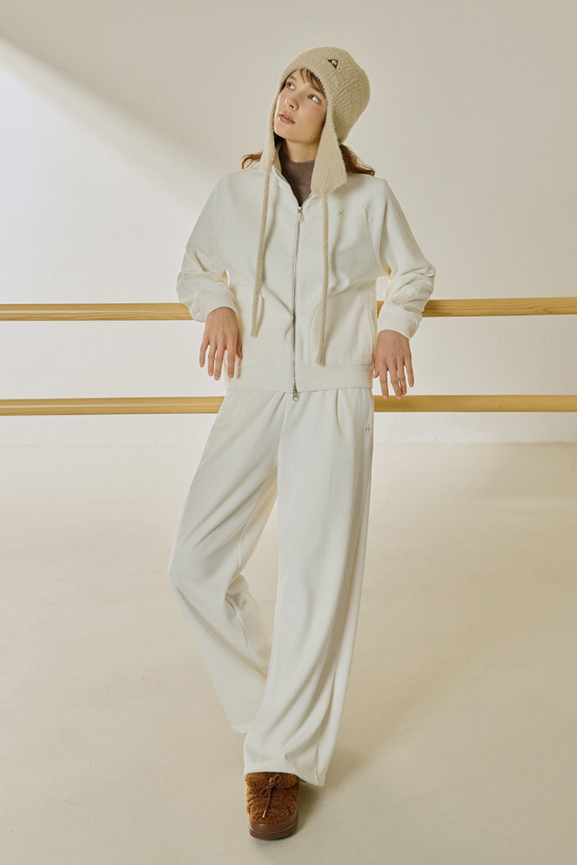 르꼬끄 스포르티브 여성 루즈핏 벨듀로이 하이넥 집업 - 아이보리 QQ422OFTO3