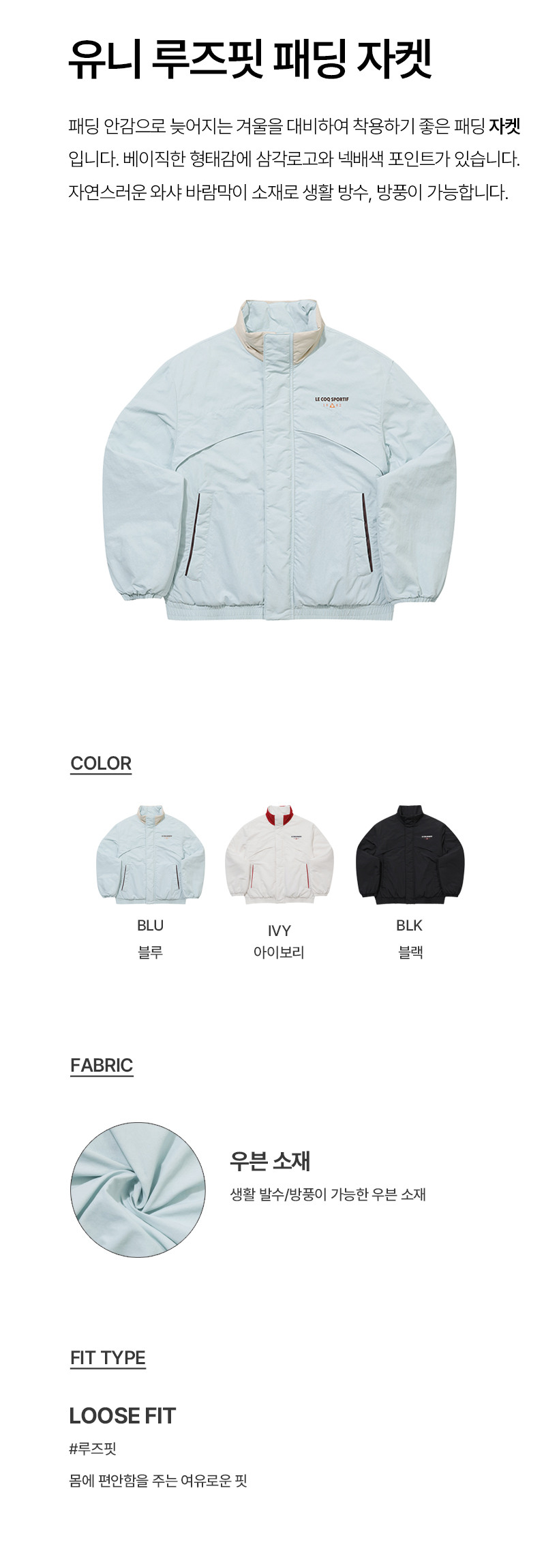 르꼬끄 스포르티브 유니 루즈핏 패딩 자켓 - 블루(QQ423LPDO1)