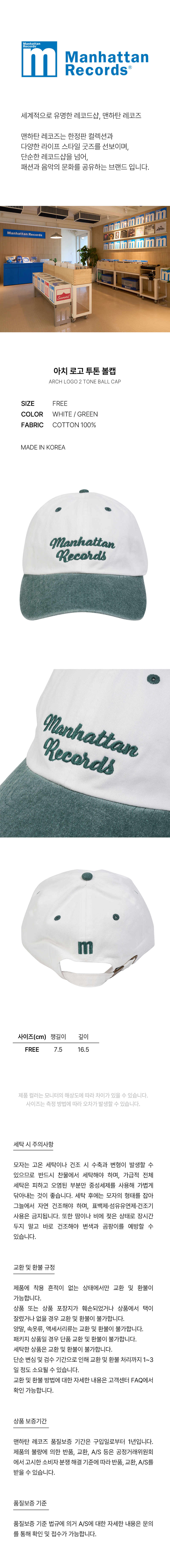 맨하탄 레코즈 아치 로고 2톤 볼캡 - 화이트 / 그린