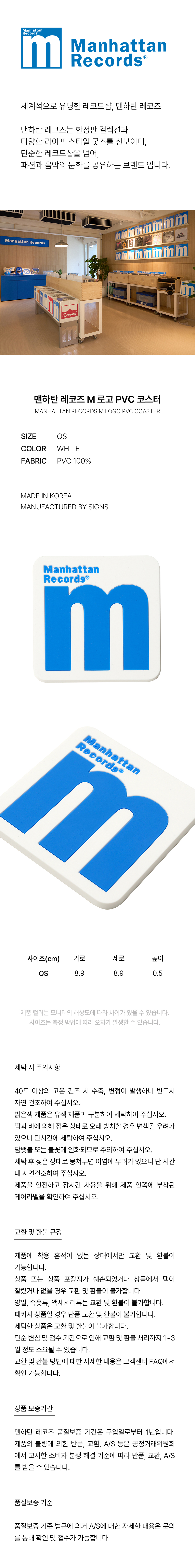 맨하탄 레코즈 엠 로고 피브이씨 코스터 - 화이트