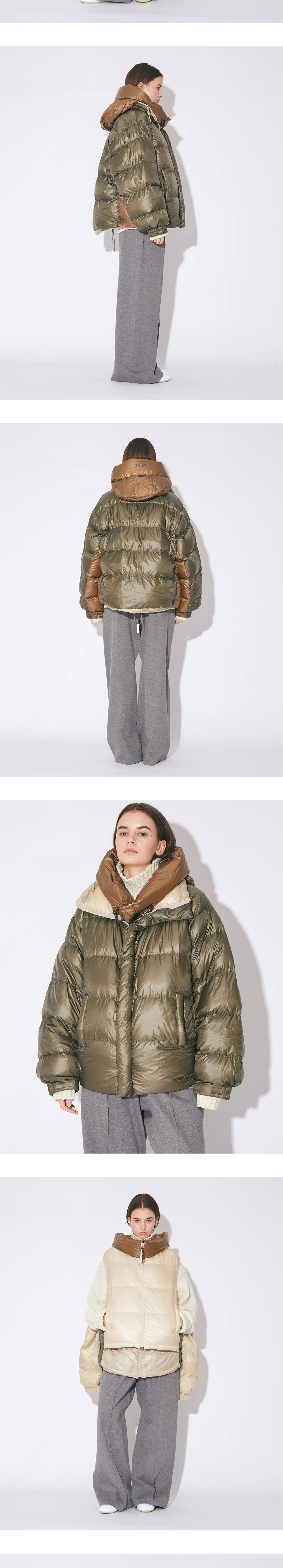 뷰티풀피플 x 난가 우먼 멀티레이어링 다운 베스트 블루종 베이지입니다. - NANGA 콜라보레이션 2중 다운 - 블루종에서 베스트로 소매 탈부착 가능 - 발수성이 뛰어난 원단 - 후드 및 밑단 스트링