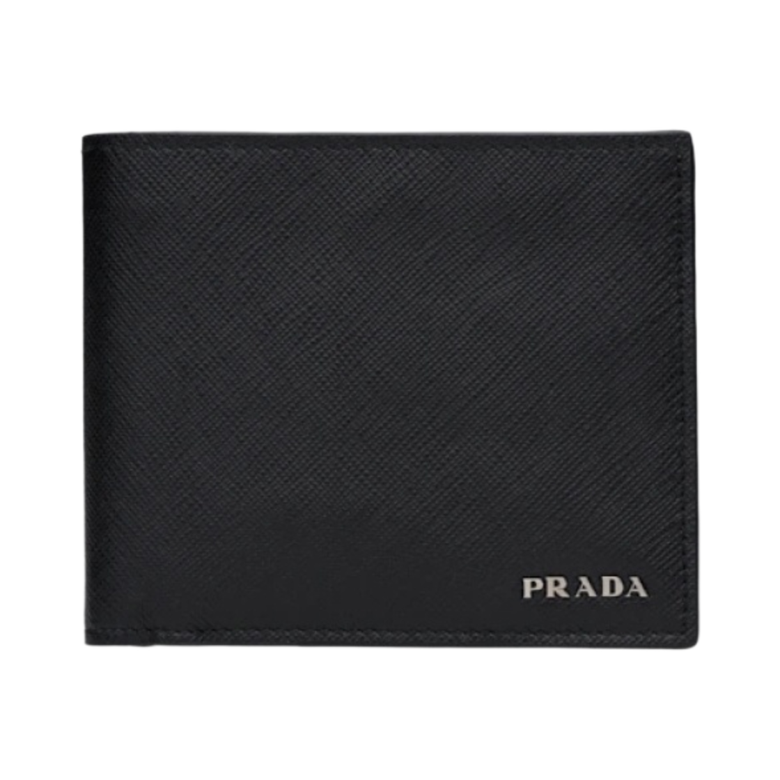 Prada Saffiano Leather Wallet Black Baltic Blue