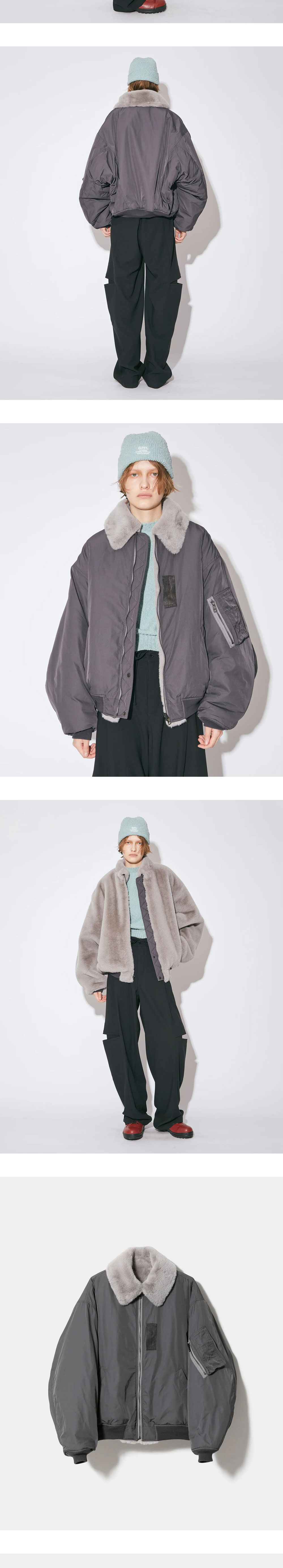 뷰티풀피플 우먼 더블 앤드 퍼x태피터 B-15 블루종 그레이입니다. - B-15 형 플라이트 재킷 - 볼륨 실루엣 - 안감 퍼 리버시블 - 밀리터리와 럭셔리함을 겸비