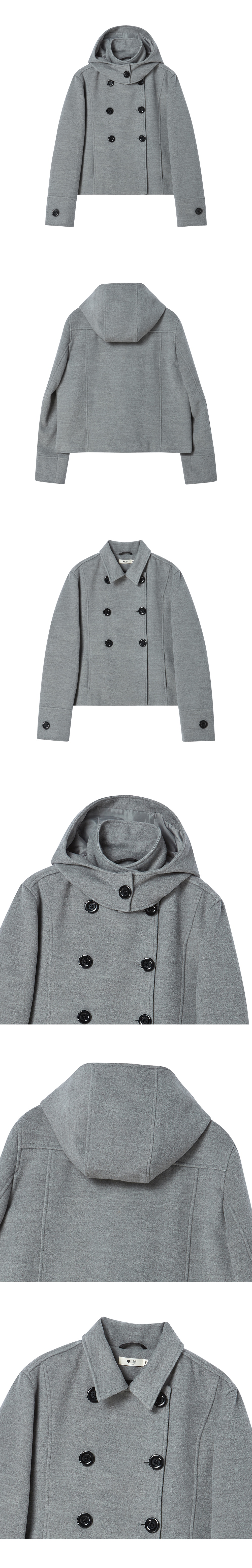 로긴 앤 로지 하트 포인트 더블 버튼 하프 코트 차콜