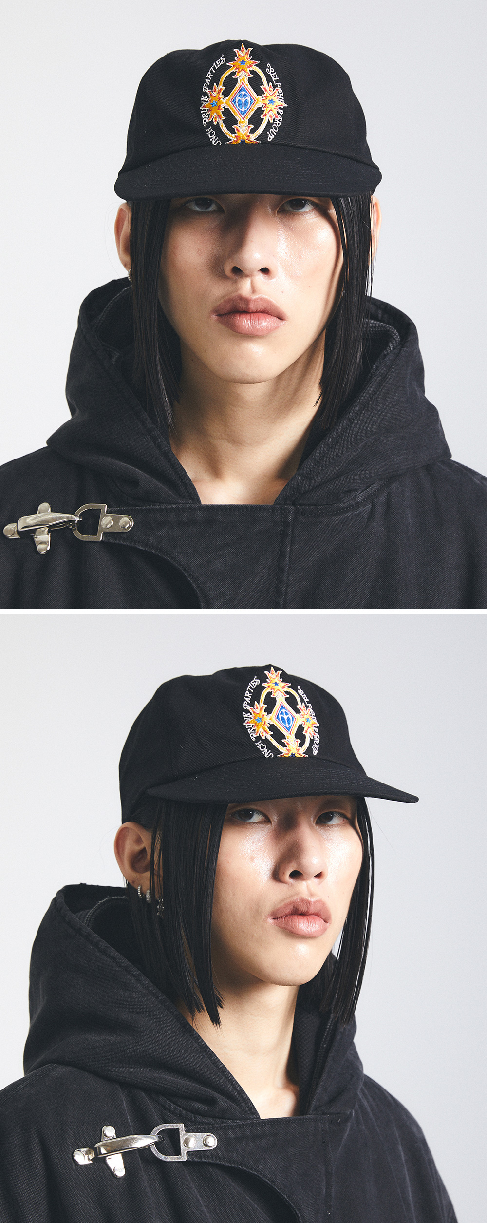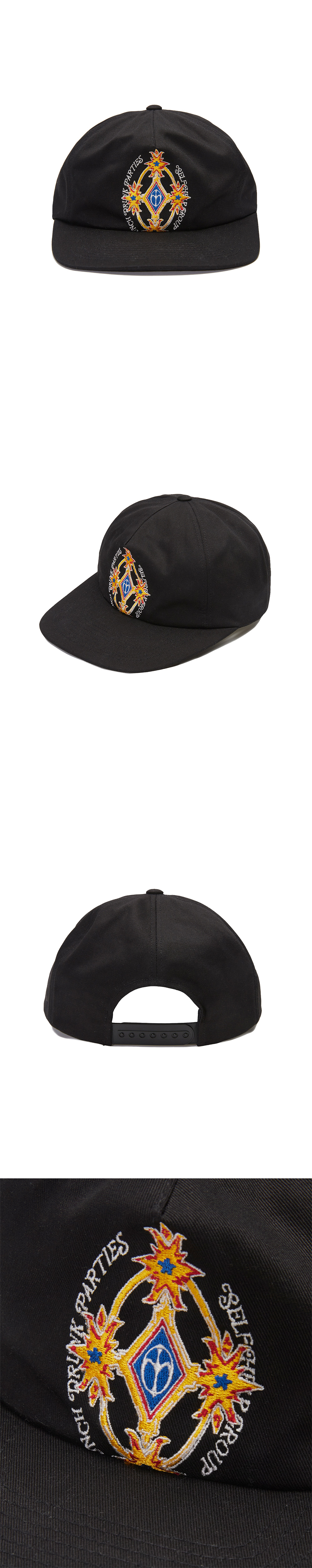 펀치 드렁크 파티즈 크레스트 로고 5패널 캡 블랙