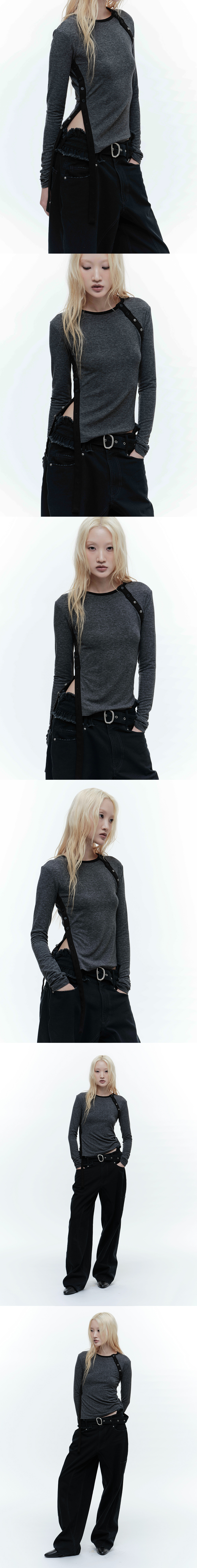 POLYESTER 56% WOOL 14% COTTON 14% TENCEL 9% SPANDEX 7% 총장 51.5cm, 어깨 40cm, 가슴 36.5cm, 소매 66.5cm, 밑단 38cm * 상세 사이즈는 단면 기준이며, 측정 방법과 위치에 따라 1~3cm 오차 범위가 생길 수 있습니다. * 모델(174cm) 피팅 사이즈 / OS 부드러운 터치감 프론트 사선 버튼 클로징 포인트 젬스톤 버튼 디테일 넥, 사이드 소재 배색 디테일 넥, 사이드 버튼으로 오픈/클로즈에 따라 다양한 핏 연출 가능 사이드 스트랩을 활용한 다양한 연출 가능 피티드핏
