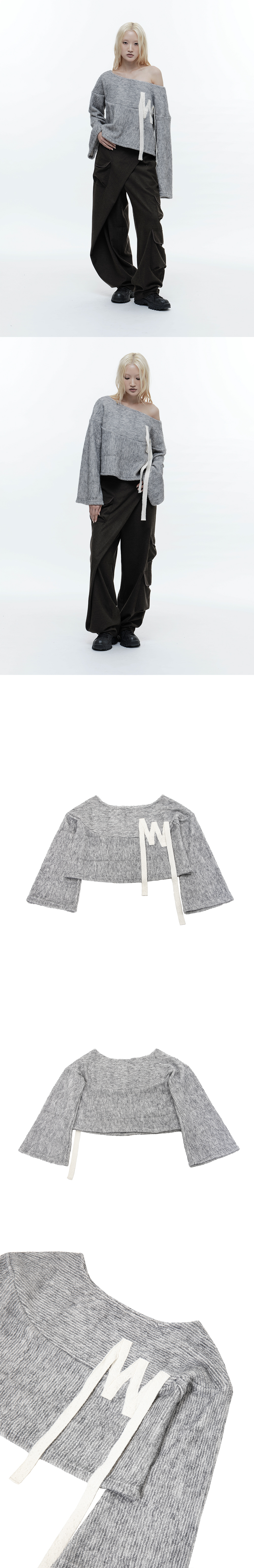 ACRYLIC 90% NYLON 10% 총장 43cm, 목 40cm, 가슴 36.5cm, 소매 50-67cm, 밑단 65cm * 상세 사이즈는 단면 기준이며, 측정 방법과 위치에 따라 1~3cm 오차 범위가 생길 수 있습니다. * 모델(174cm) 피팅 사이즈 / OS 와이드 넥 스웨터 프론트 스트랩 자수 포인트 플레어 슬리브 디자인 루즈핏