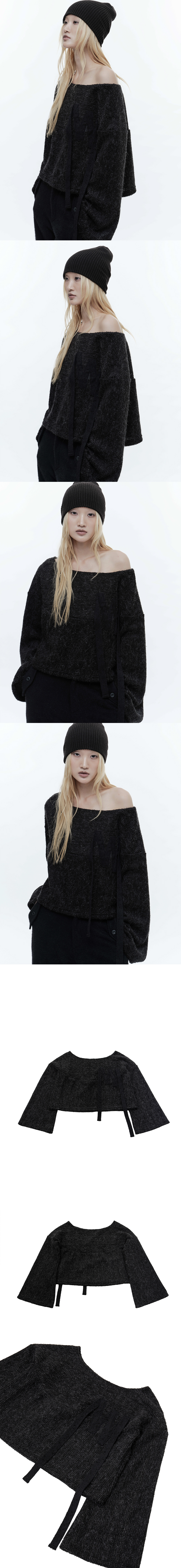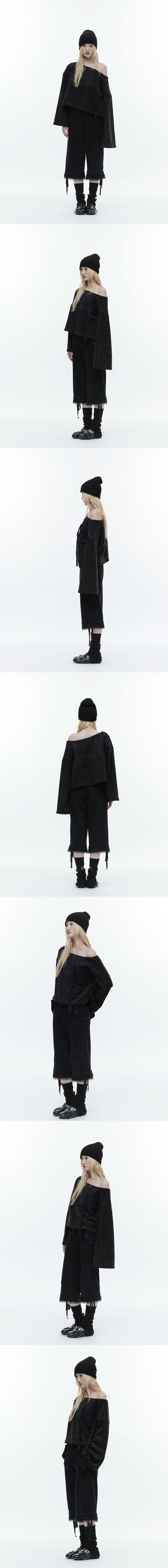 ACRYLIC 90% NYLON 10% 총장 43cm, 목 40cm, 가슴 36.5cm, 소매 50-67cm, 밑단 65cm * 상세 사이즈는 단면 기준이며, 측정 방법과 위치에 따라 1~3cm 오차 범위가 생길 수 있습니다. * 모델(174cm) 피팅 사이즈 / OS 와이드 넥 스웨터 프론트 스트랩 자수 포인트 플레어 슬리브 디자인 루즈핏