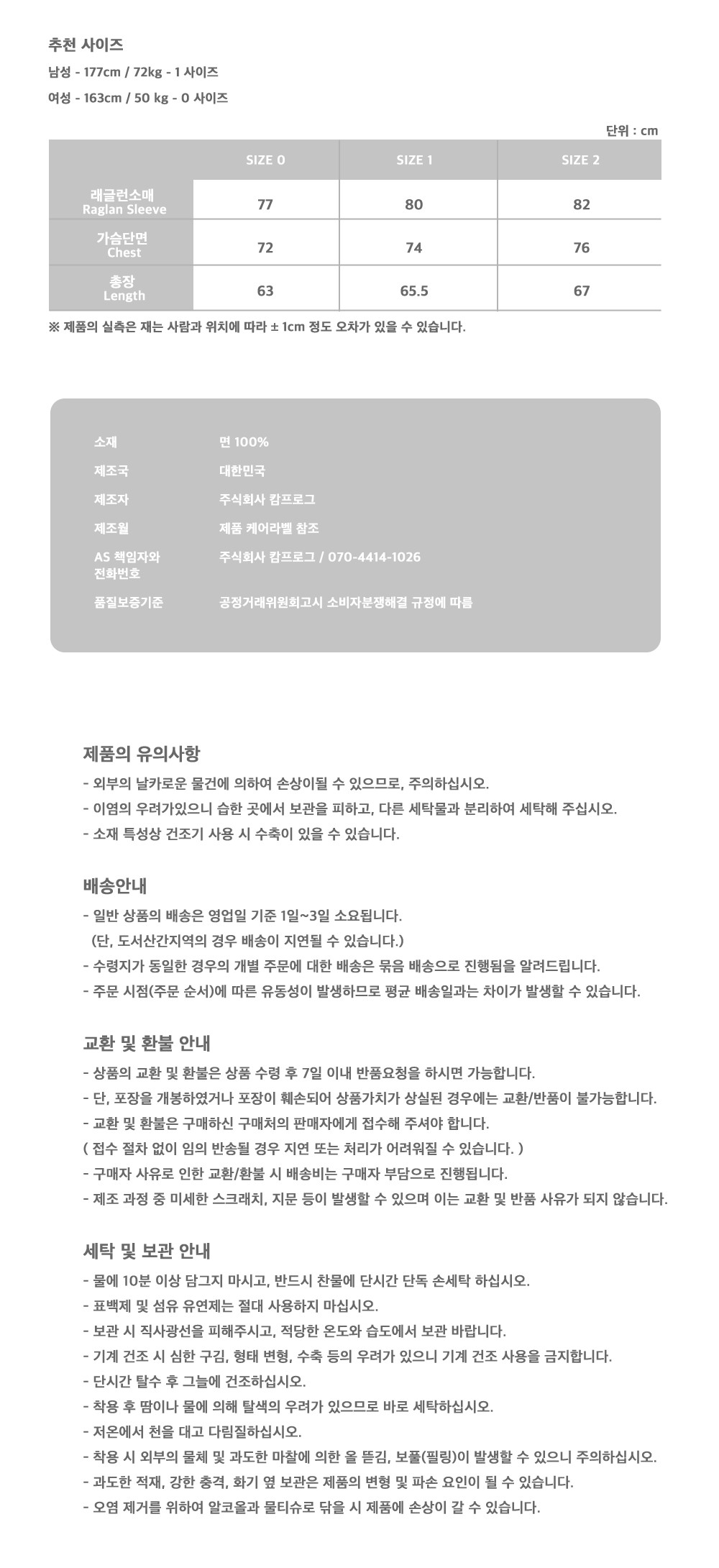 | 가슴 | 소매(래글런) | 총장 |