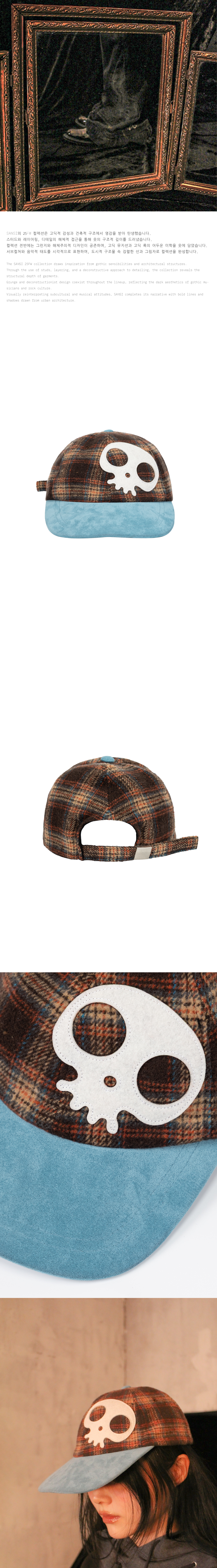 Skull Patched Flannel Cap - Blue - Flannel check 6-panel cap - Suede visor - Skull felt patch - Main: 90% PES, 10% Wool / Visor: 90% PES, 10% PU