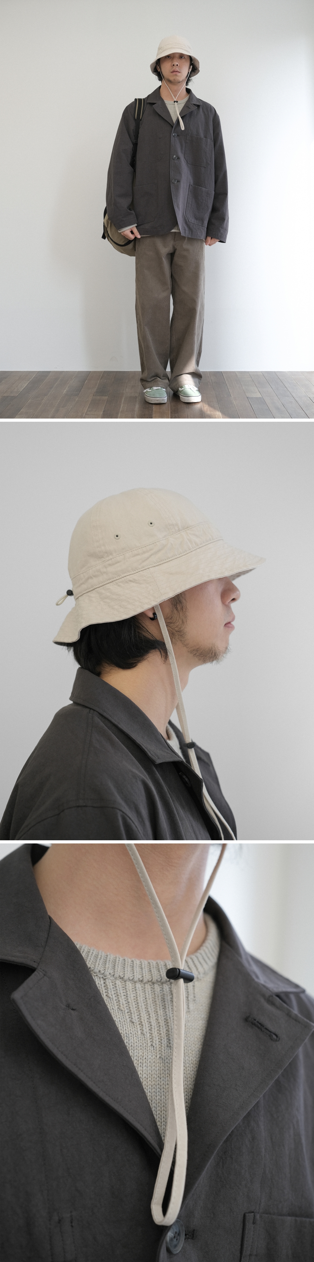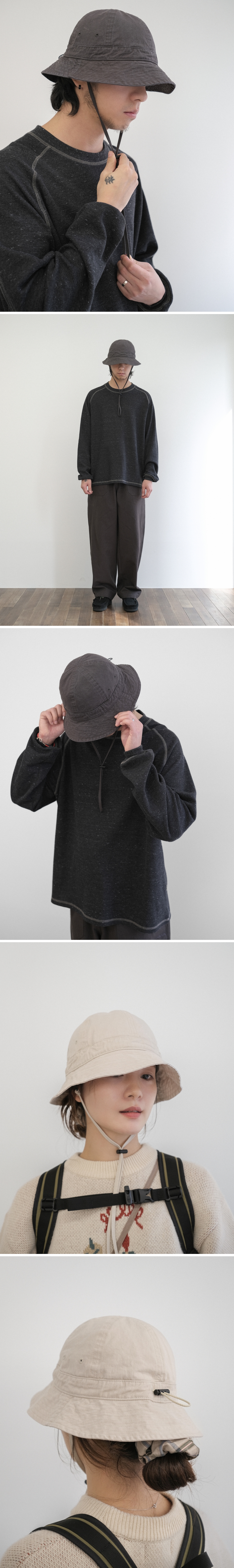 - 40수 2합 고밀도 트윌 바틱 염색 원단 - 빈티지한 무드를 더하기 위한 바이오 워싱 가공 - 후면 탄성 스트링으로 사이즈 조절 가능 - 전면 에메모 얼굴 로고 자수 포인트 - 모자를 목 뒤로 걸거나 바람에 날아가지 않도록 고정할 수 있는 탈부착형 턱끈 디테일 어디론가 여행이나 산책을 떠나고 싶어지는, 에메모만의 감성을 담아 제작한 버킷햇입니다. 색상 카키 소재 면 100% 부자재 woojin plastic, 3m scotchlite string 핏 스탠다드 사이즈 (cm) 머리둘레 59 / 높이 16.5 / 챙 길이 7 / 무게 약66g