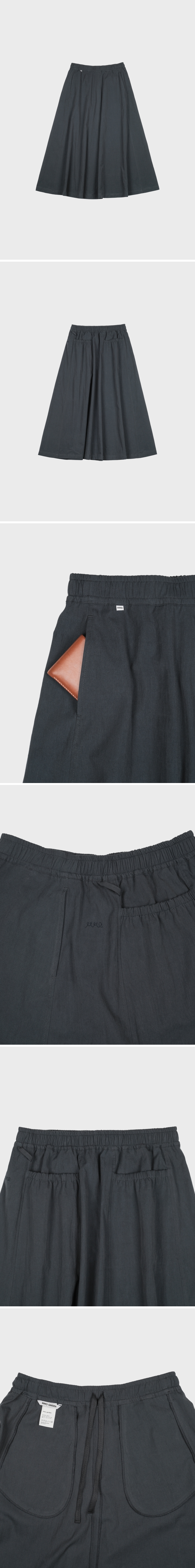 - 가볍고 탄탄한 면‧나일론 혼방 원단으로 제작 - 전면에서 깔끔하게 떨어지는 A라인 실루엣 - 에메모만의 패턴으로 완성된 볼륨감 있는 후면 밴딩 포켓 디자인 - 허리 안쪽 끈으로 사이즈 조절이 가능한 밴딩 스커트 - 허리 벨트 라인에 가벼운 소지품을 걸 수 있는 고리 티테일 - 전면 벨트 아래 피스 라벨과 왼쪽 톤온톤 자수로 더한 은은한 디테일 색상 네이비 소재 면 75%, 나일론 25% 사이즈 (cm) 총장 84 / 허리 35 / 엉덩이 55.5 / 밑단폭 108.5