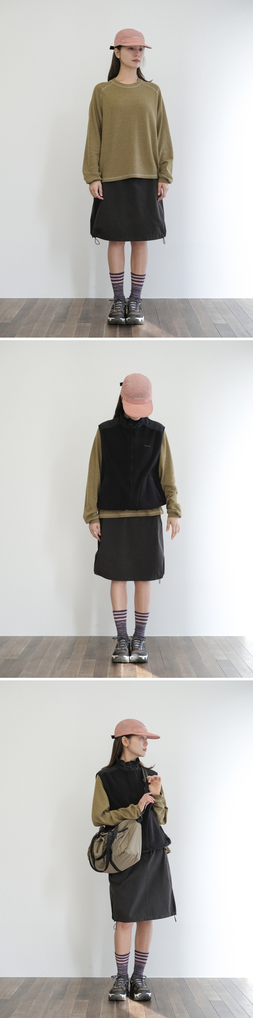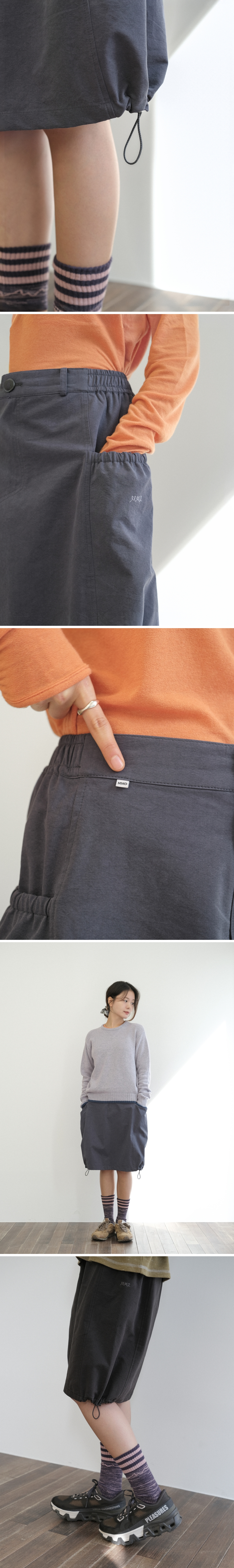 - 바틱 염색으로 완성된 빈티지한 색감과 자연스러운 구김감의 텍스처 - 무릎 아래로 살짝 내려오는 미디 기장 - A라인 실루엣에서 밑단 사이드 스토퍼 조절로 벌룬 핏 연출 가능 - 후면 밴딩으로 편안한 착용감, 안쪽 끈은 벗겨짐을 방지하는 이중 잠금용 디테일 - 볼륨감 있는 사이드 포켓으로 완성된 자연스러운 실루엣 - 허리 벨트 라인에 가벼운 소지품을 걸 수 있는 고리 디테일 - 전면 벨트 아래 피스 라벨과 왼쪽 포켓 배색 자수로 더한 포인트 색상 블랙 소재 면 60%, 레이온 40% 사이즈 (cm) 총장 56 / 허리 35 / 엉덩이 50.5 / 밑단폭 60